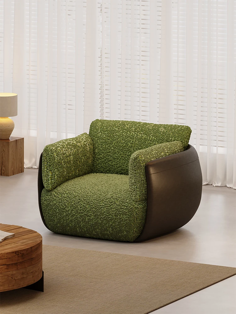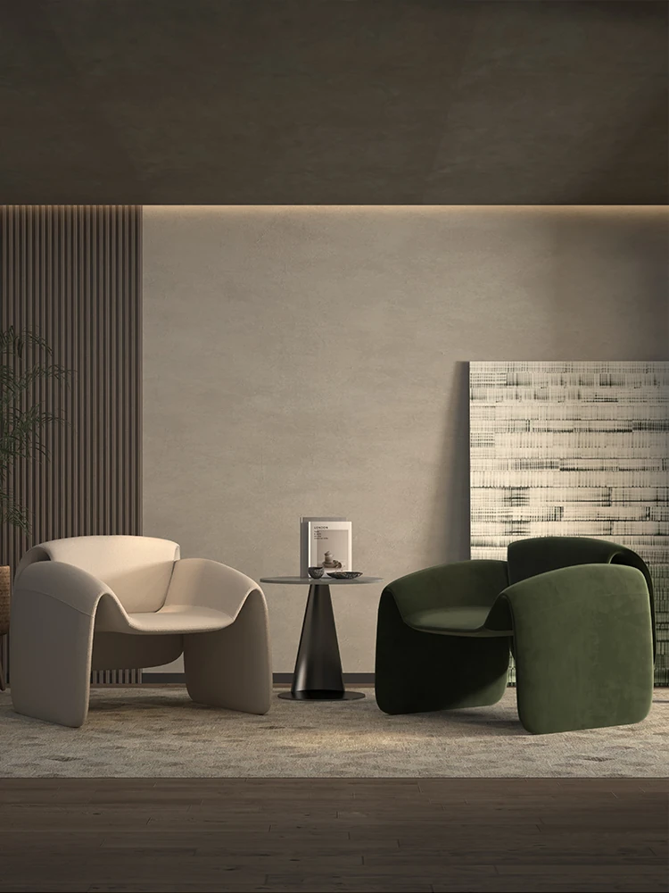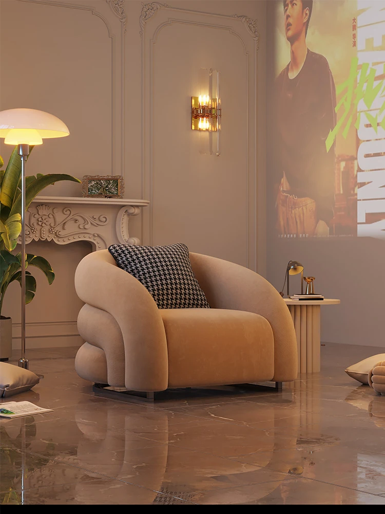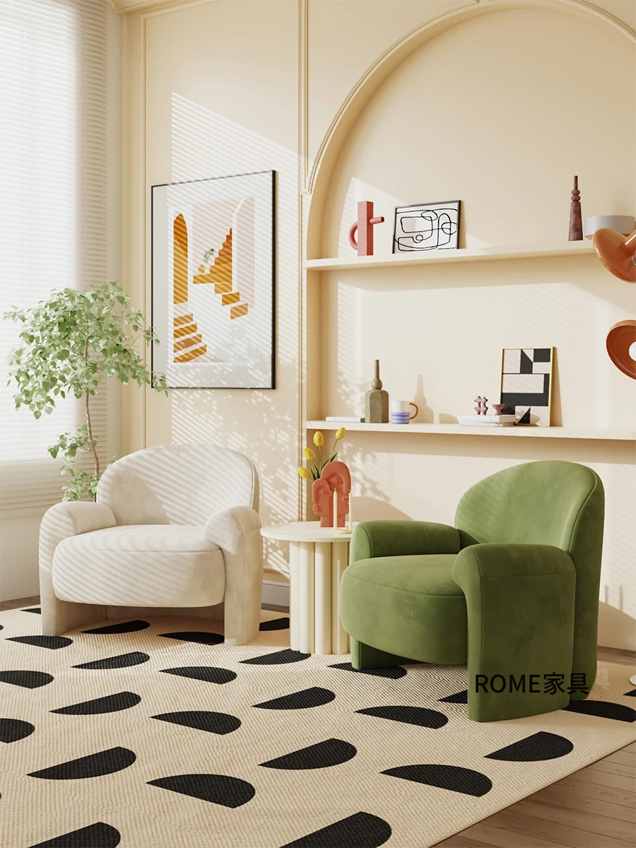 ROMEデザイナーソファチェア - ラグジュアリーなシンプルデザインの一人用リラックスチェア。モダンで洗練されたスタイルは、美容院や休憩スペースにぴったり。おしゃれなインテリアを演出し、くつろぎのひとときを提供します。