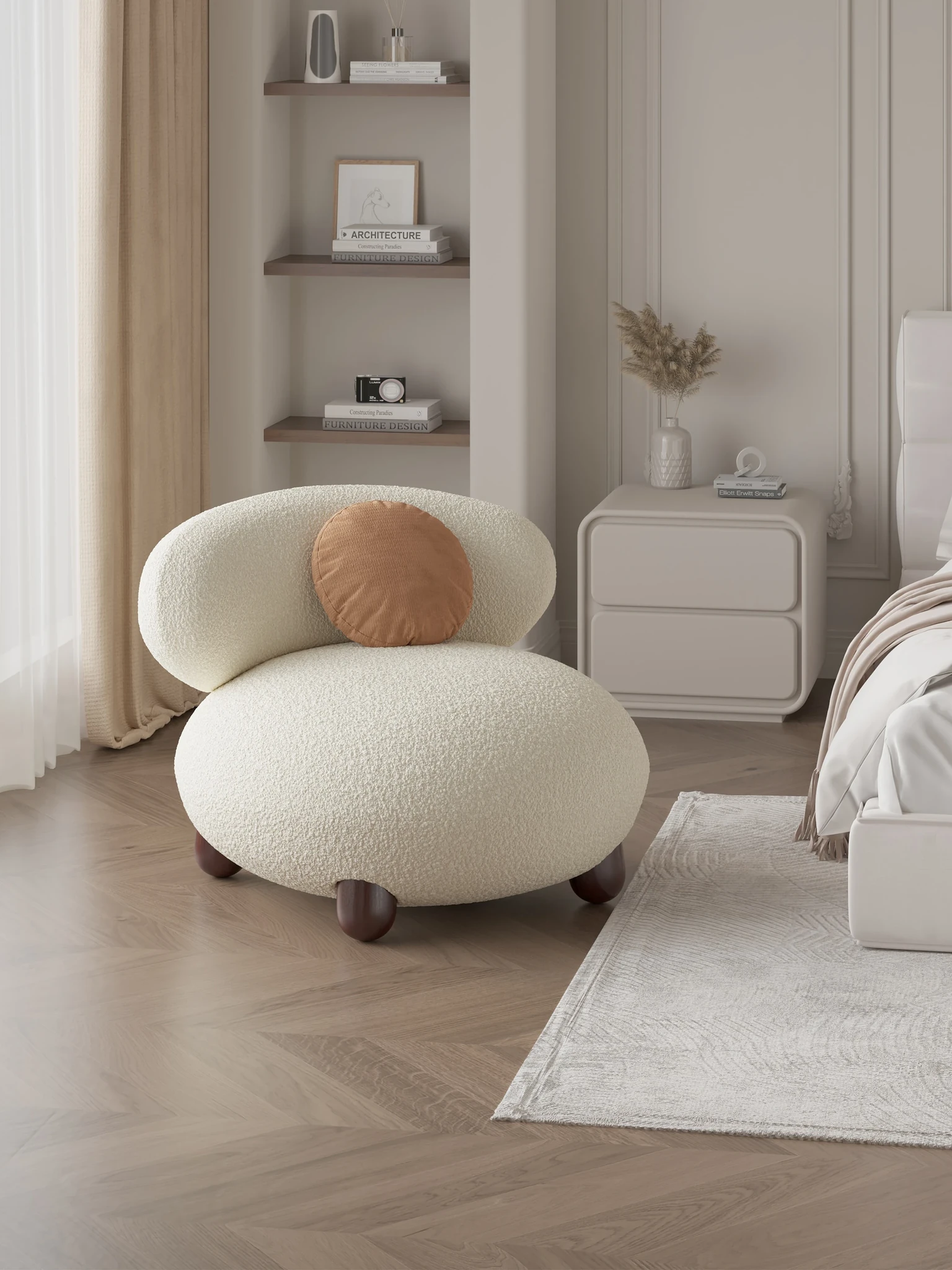 侘寂スタイルの一人用無垢材リラックスチェア|デザイナーによるクリーミーでスタイリッシュな寝室・リビング・バルコニー用シンプルソファ|おしゃれで心地よい空間を演出!