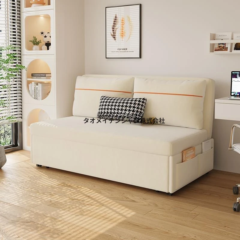クリーム風ソファベッド 折りたたみ式 二用途 小型リビング・書斎に最適!収納付き シングル・ダブルサイズ 引き出し式 人気のソファでお部屋をおしゃれに演出!
