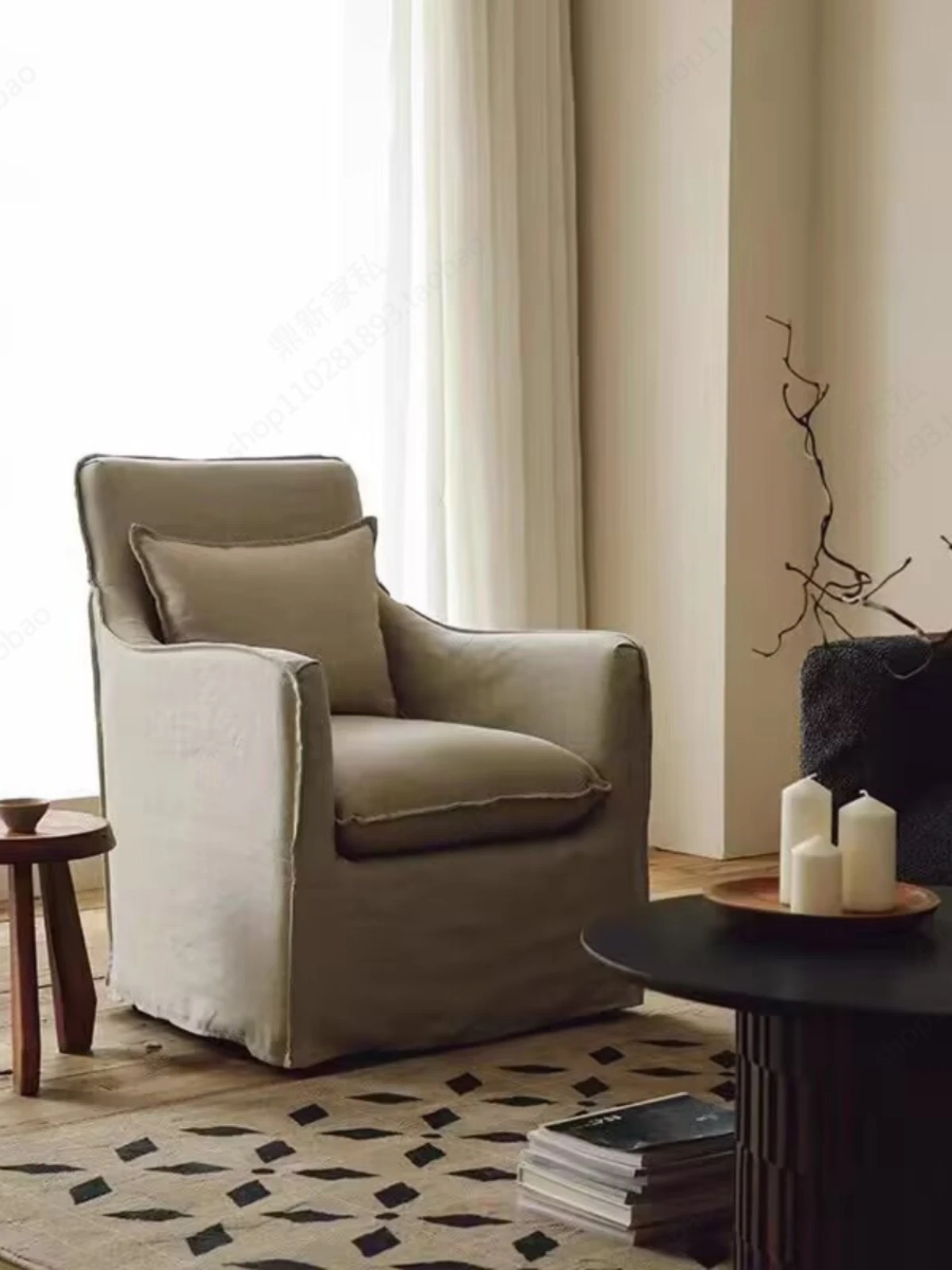 和の侘び寂びを感じるデザイン!デザイナーによる一人用ソファ、アメリカンレトロスタイルでシンプルかつおしゃれ。洗濯可能なコットンリネン素材で、リビングにぴったりのリラックスチェアです。