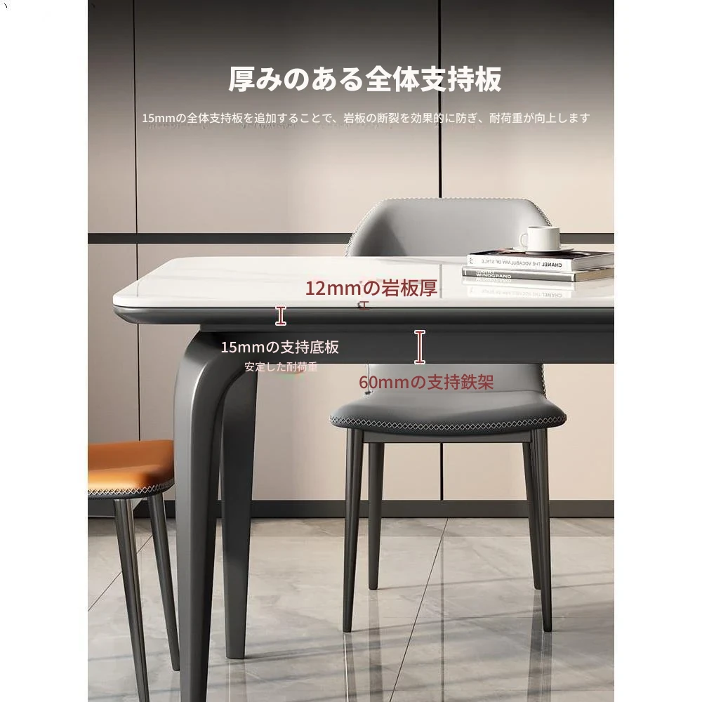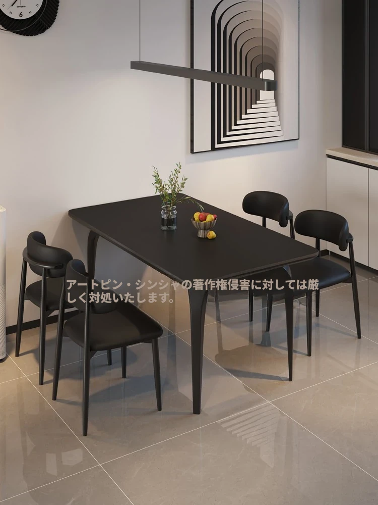 イタリアンライトラグジュアリー岩板ダイニングテーブルチェアセット|小型住宅に最適なモダンシンプルな長方形デザイン|全て岩板製で高級感溢れる食卓を実現!