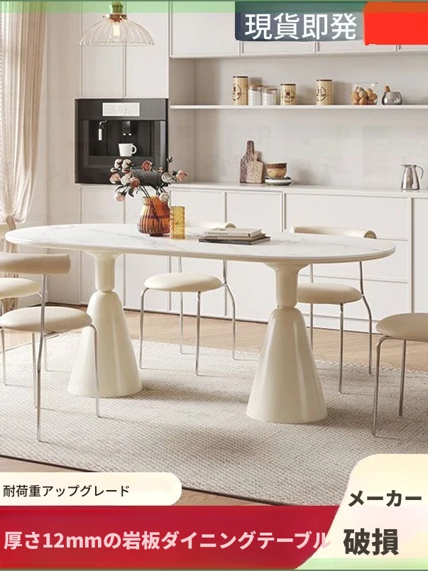 フレンチクリーム風デザインの岩板ダイニングテーブル - モダンでシンプル、家での軽奢を楽しむ小型スペース向けテーブル&チェアセット。壁に寄せて使える便利さ!