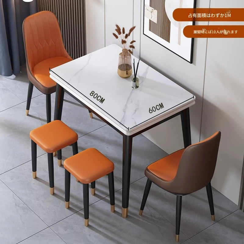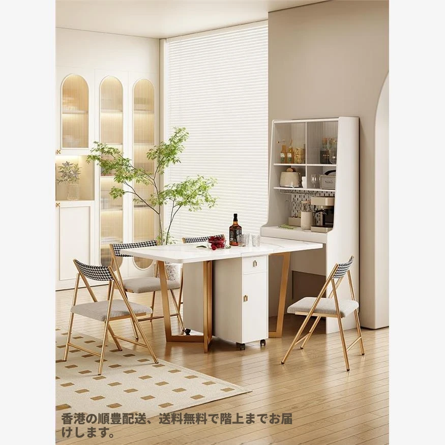【香港のパッケージ】省スペースで多機能!折りたたみ式岩板ダイニングテーブル&サイドボードセット - 小型住宅に最適な家族向けの快適な食卓を実現!