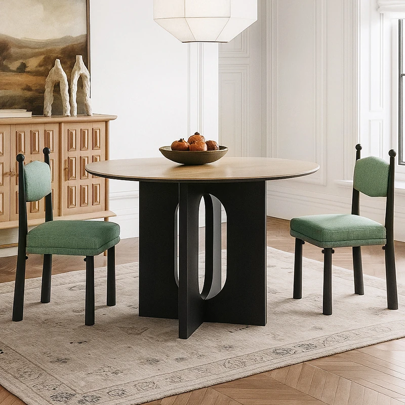 イタリアンスタイルの家庭用ラウンドテーブル - シンプルで高級感溢れる現代的なデザイン、天然木使用の広々としたダイニングテーブル。おしゃれで快適な食卓を演出し、特別なひとときをお届けします。