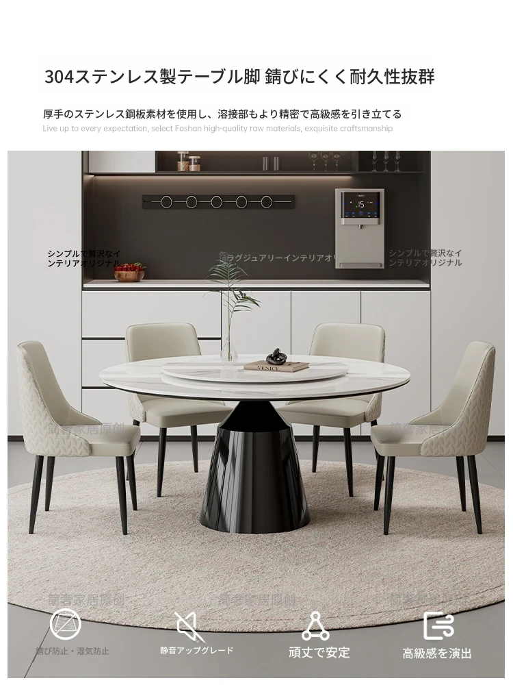 ラウンドテーブル 高級感溢れるイタリアンミニマリズムデザイン 小型住宅に最適 モダンシンプルな岩板製ダイニングテーブル食卓 高端でスタイリッシュな選択!