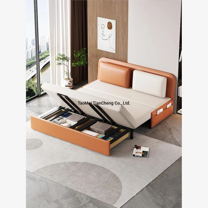 【Free Shipping to Hong Kong】Modern Minimalist Sofa Bed for Small Spaces with Storage - Stylish Cream-Colored Double Bed for Your Living Room