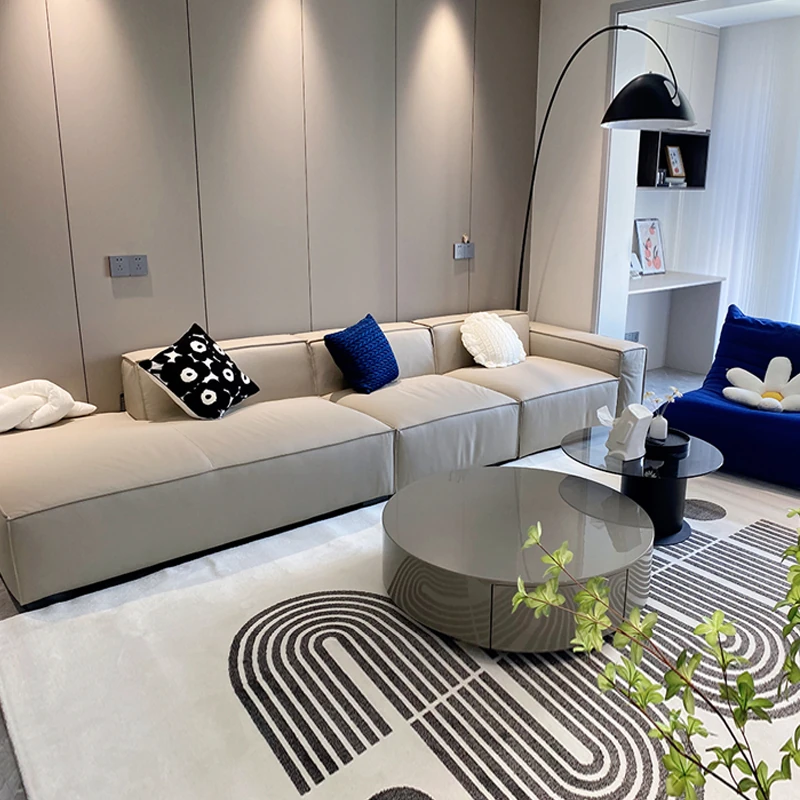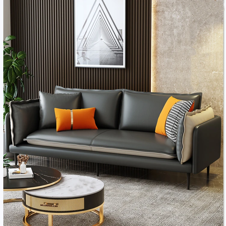 Italian-Inspired Luxury Modern Sofa - Versatile Three-Seater for Apartments, Featuring Easy-Clean Tech Fabric and Ultra-Fine Leather, Perfect for Minimalist Nordic Living Rooms.