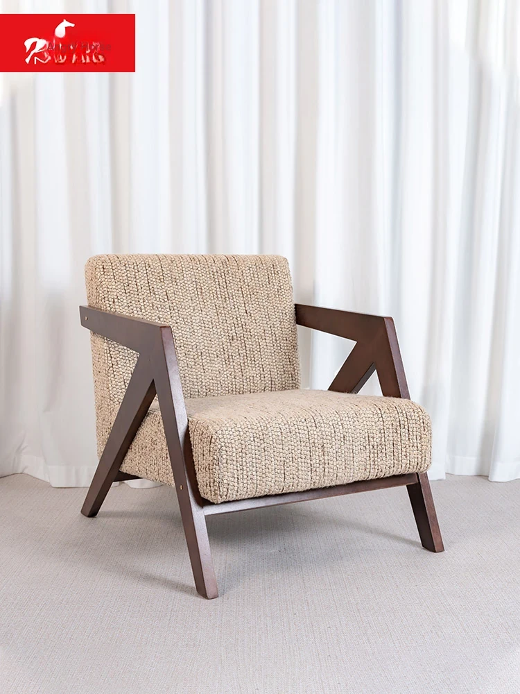 American Style Leisure Sofa Chair - Solid Wood Study Chair, Nordic Minimalist Modern Armchair for Office, Hotel, Café, and Dining Room