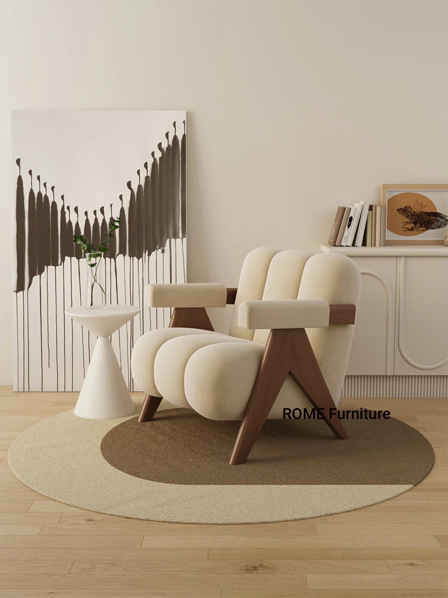 Vintage-Inspired Single Sofa Chair for Living Room - Designer Creamy Aesthetic Armchair for Bedroom and Balcony Relaxation, Perfect for a Cozy and Stylish Home Decor
