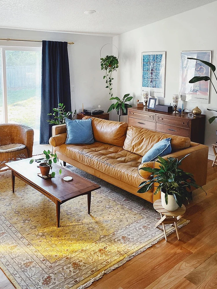 Nordic Minimalist Three-Seat Sofa in Industrial Vintage Brown - Perfect for Small Living Rooms with Durable Fabric and Leatherette Upholstery, Combining Style and Comfort.