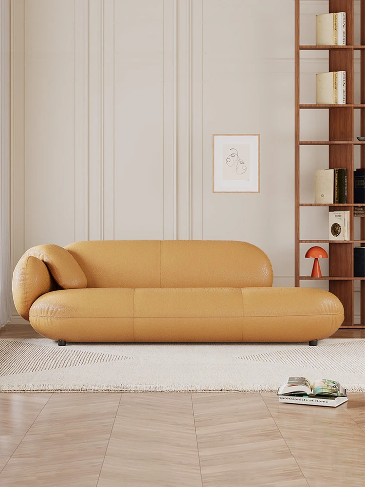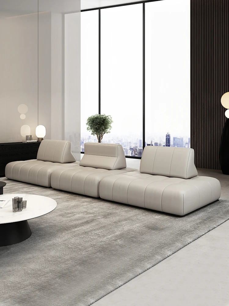Minimalist Italian Style Horn Sofa for Small Spaces - Premium Top Grain Leather, Movable Backrest, Armless Design, Double-Sided Seating, Perfect for Modern Living Rooms.