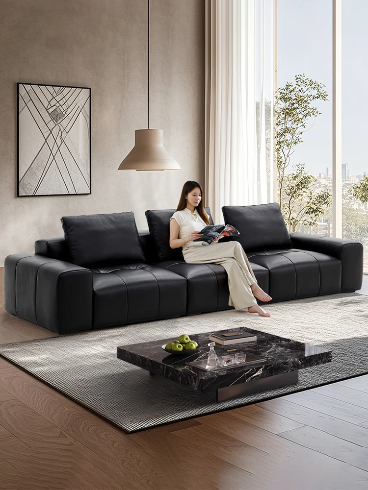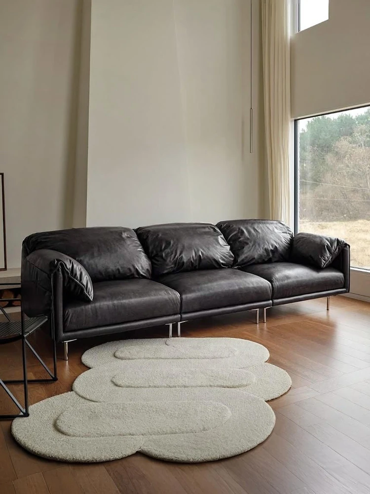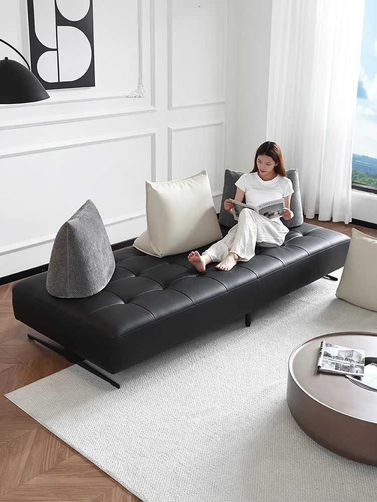 Genuine Leather Italian Minimalist Sofa - Modern Nordic Daybed for Small Spaces, Upholstered in Top-Grain Cowhide for Your Living Room