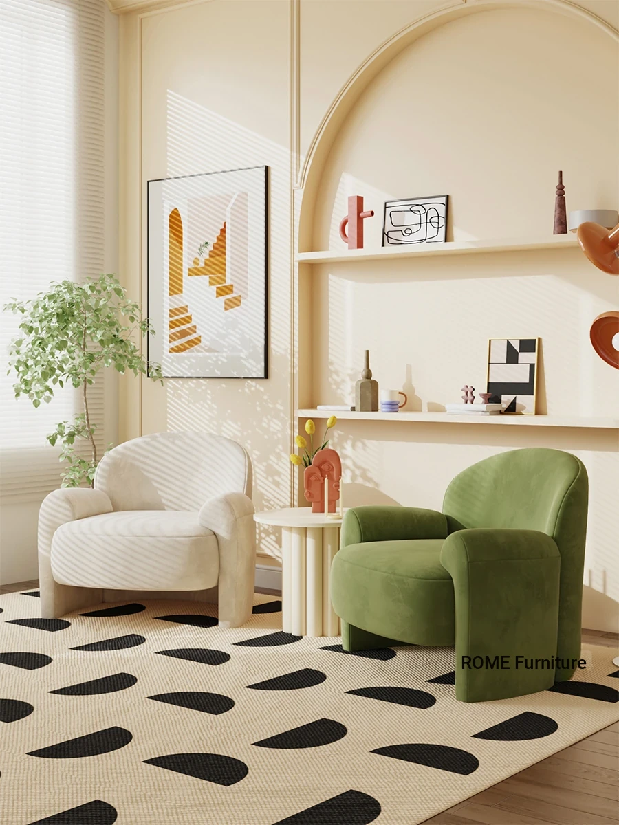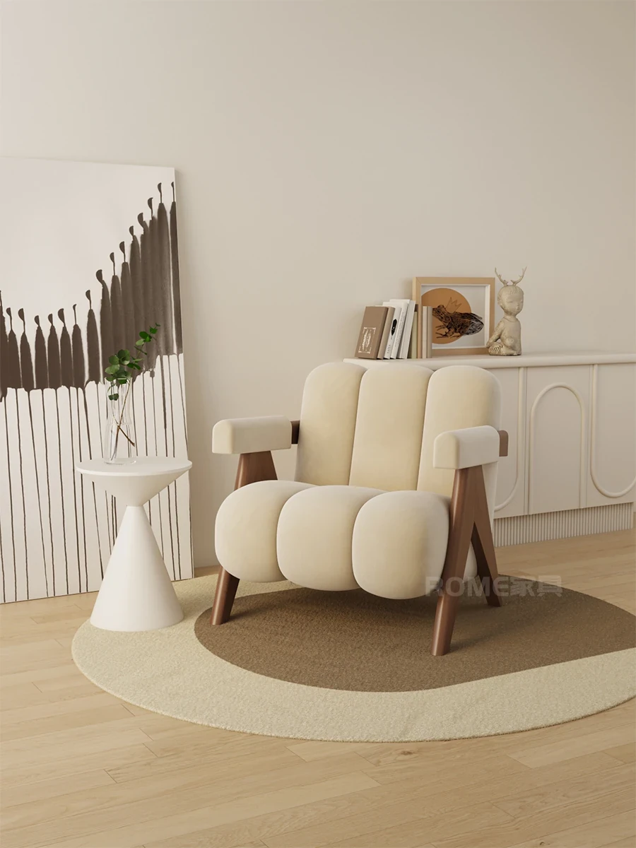 Trendy Designer Single Sofa Chair - Creamy Aesthetic for Living Room, Cozy Lazy Chair for Bedroom and Balcony, Creative Relaxation Furniture