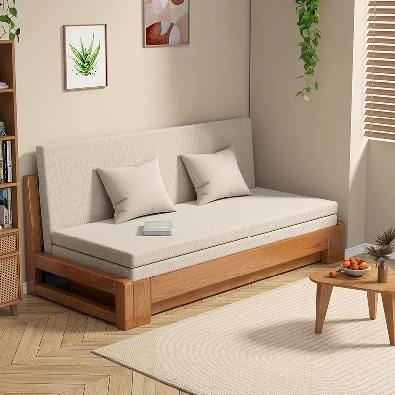 【Free Shipping to Hong Kong】Multi-Functional Solid Wood Sofa Bed - Foldable Design for Living Room, Ideal for Small Spaces, Perfect for Single Use with Storage Options