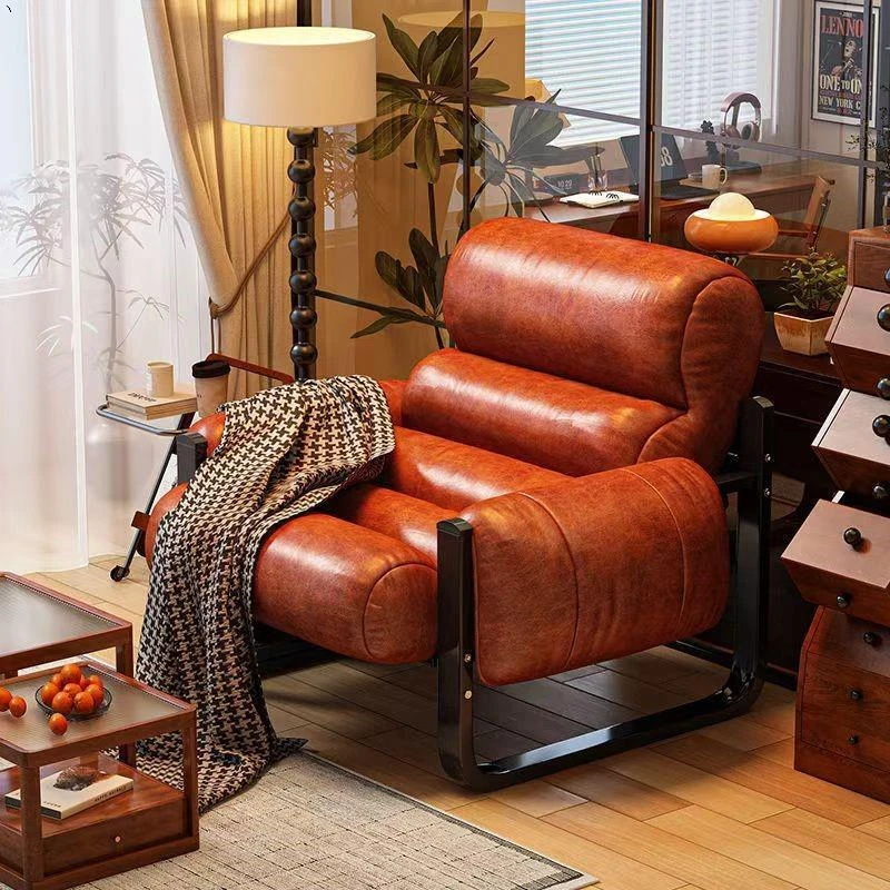 Vintage-Inspired Designer Casual Lazy Sofa - Nordic Style Creative Two-Tone Armchair for Bedroom, Balcony, or Living Room - Perfect for Relaxation and Stylish Decor
