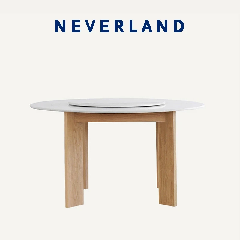 NEVERLAND Unique Scandinavian Modern Italian Minimalist Solid Wood Marble Round Dining Table with Lazy Susan - Scaro Collection
