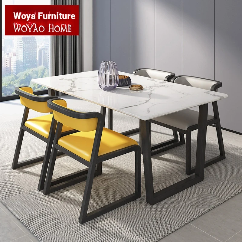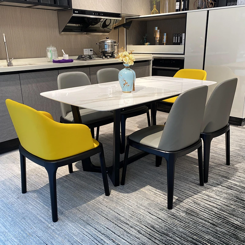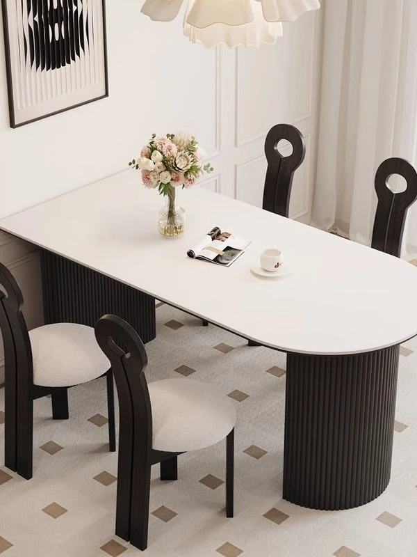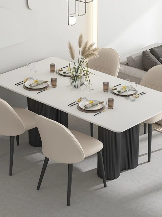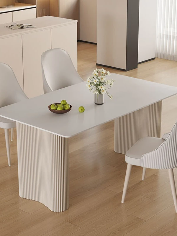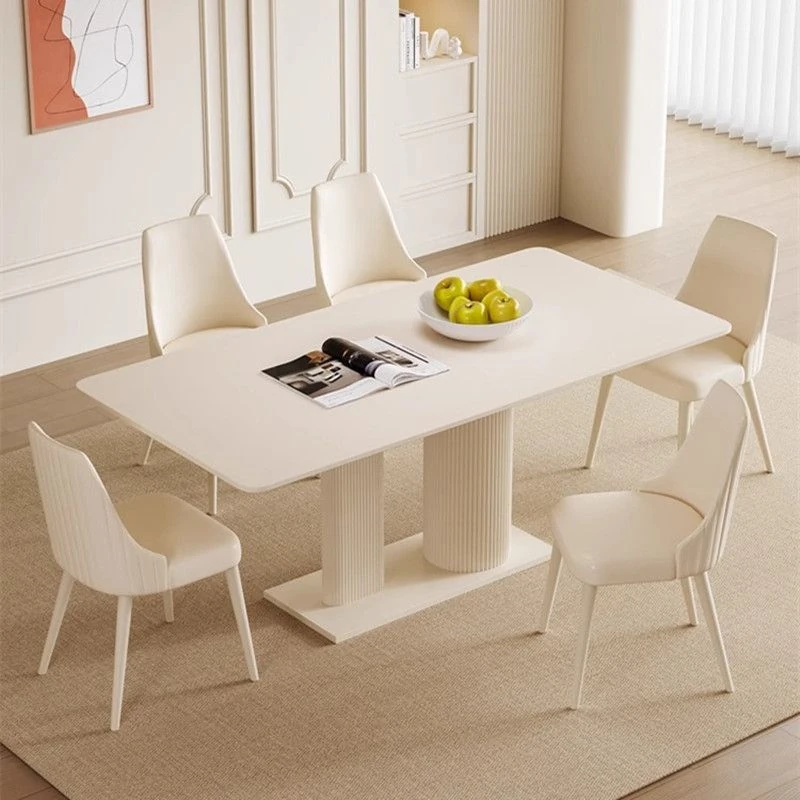 Creamy White Rock Plate Dining Table - 2024 New Rectangular Design for Small Spaces, Modern Minimalist Style with Elegant Chairs - Perfect for Your Home!