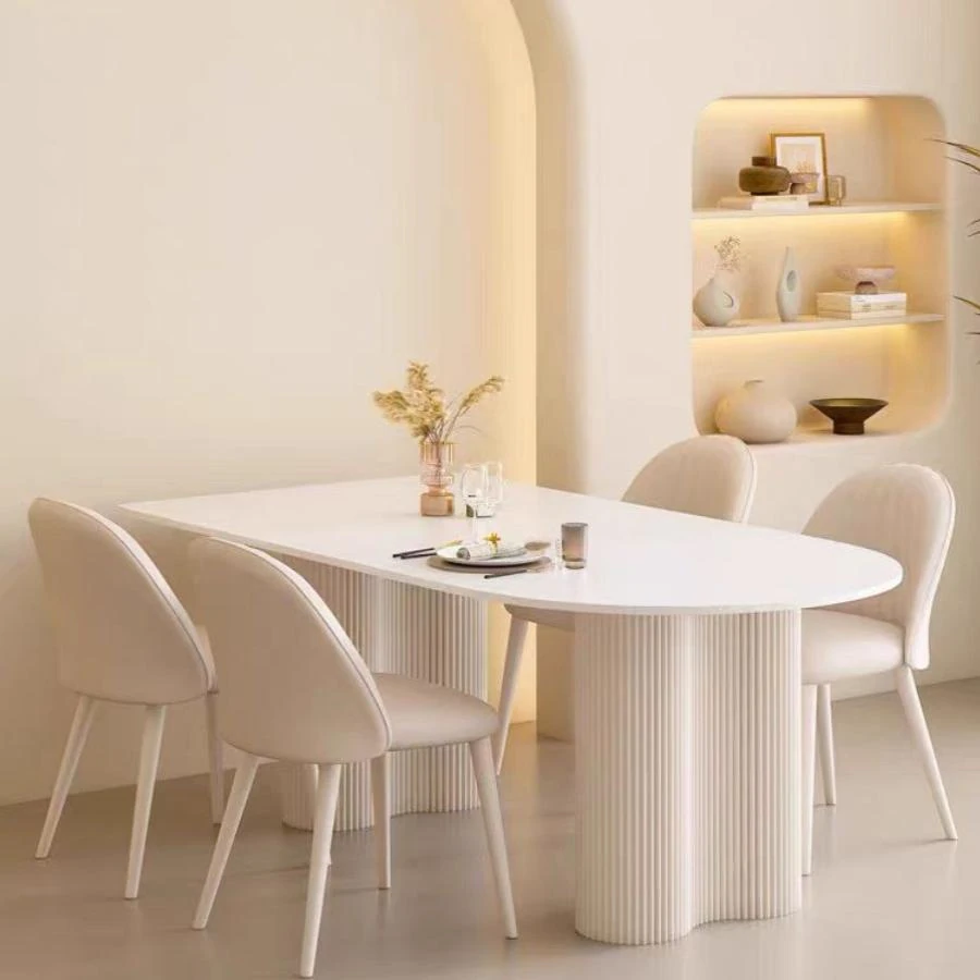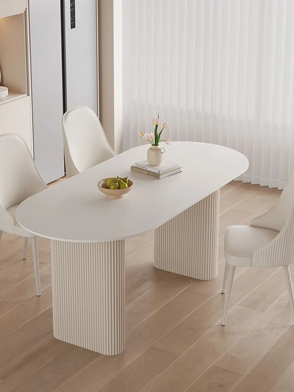 Elegant Creamy White Rock Plate Dining Table Set - Modern Minimalist Oval Dining Table with Chairs for Small Spaces, Perfect for Luxurious Home Dining
