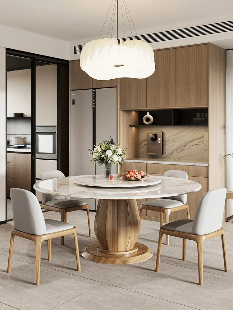 Luxury Round Marble Dining Table Set with Rotating Platform - Solid Wood and Ultra Crystal Stone - Perfect for Home Dining Experience