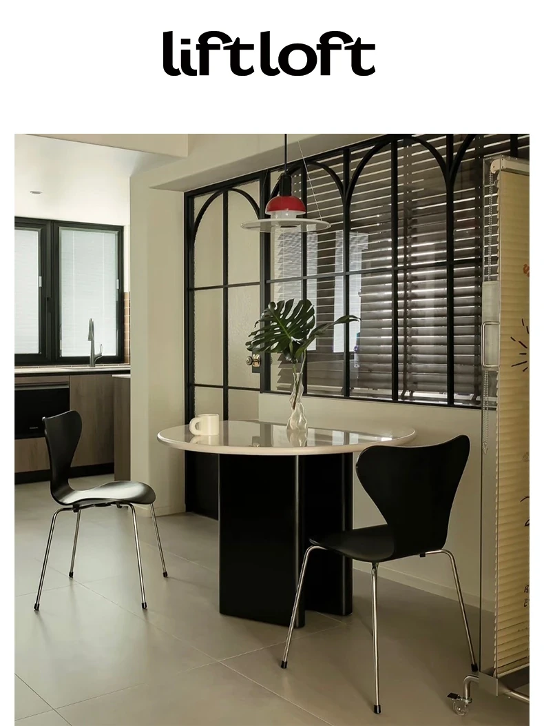 Nordic Style Half-Round Dining Table Set with Rock Slab Top – Modern Minimalist Luxury for Small Spaces, Perfect for Home Use with Chairs Included