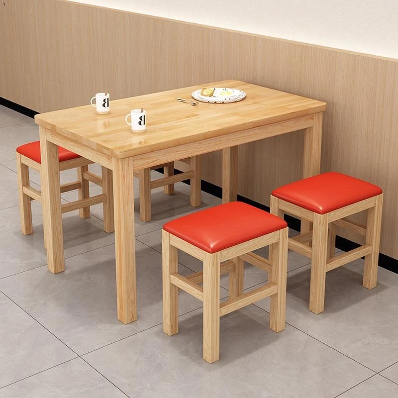 Commercial Solid Wood Dining Table and Chair Set for Fast Food Restaurants, Snack Bars, Milk Tea Shops, and Cafes - Perfect for Cozy Booths and Dining Spaces!