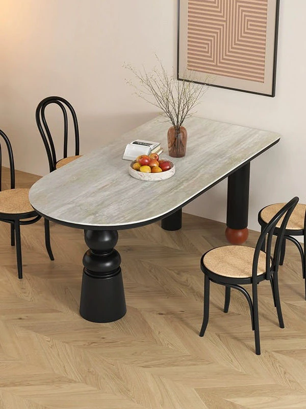 Imported Solid Wood Rock Plate Japanese Wabi-Sabi Retro Nordic Minimalist Rectangle Dining Table – Elegant Designer Furniture for Contemporary Dining Spaces