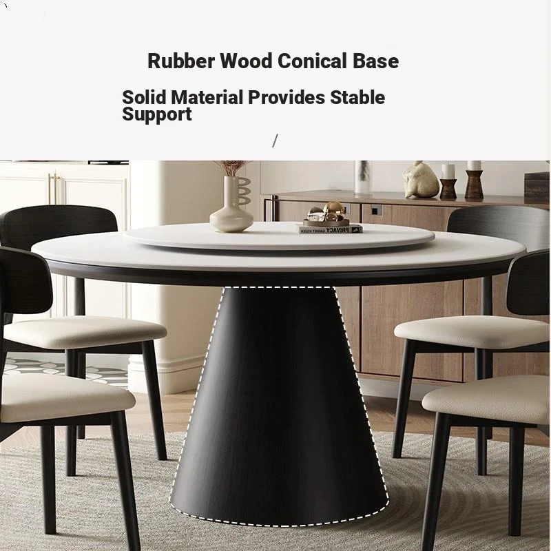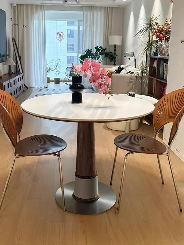 Vintage-Style Solid Wood Round Dining Table for Small Spaces - Minimalist Pure White Delifeng Rock Board Round Kitchen Table