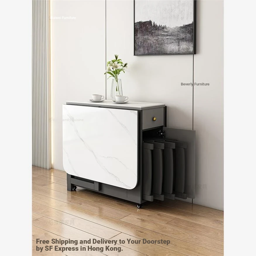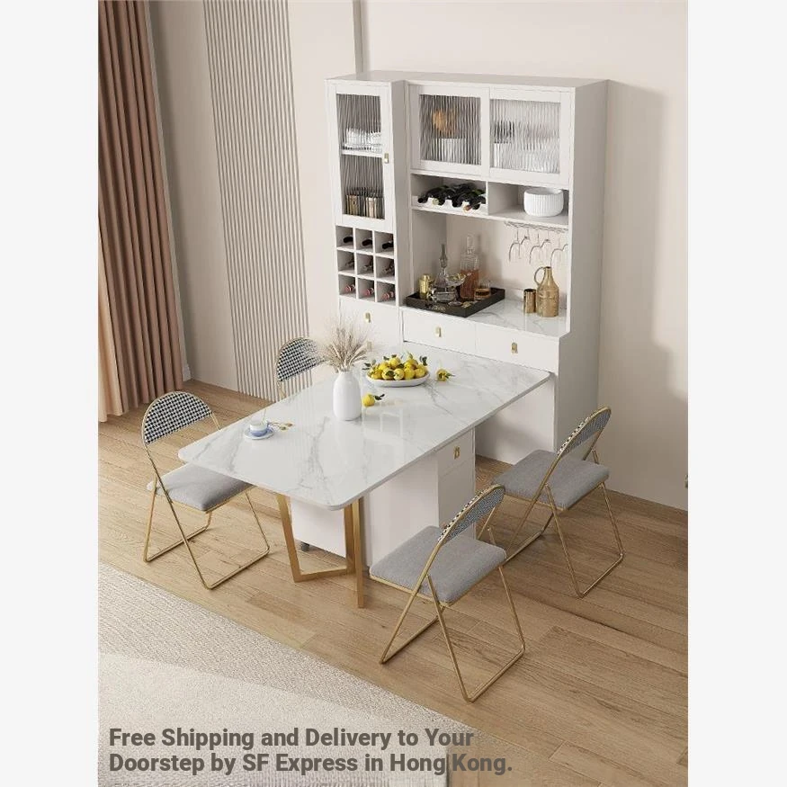 【Free Shipping to Hong Kong】Versatile Folding Dining Table & Side Cabinet Combo - Space-Saving, Expandable & Movable Design for Small Homes - Modern Minimalist Style