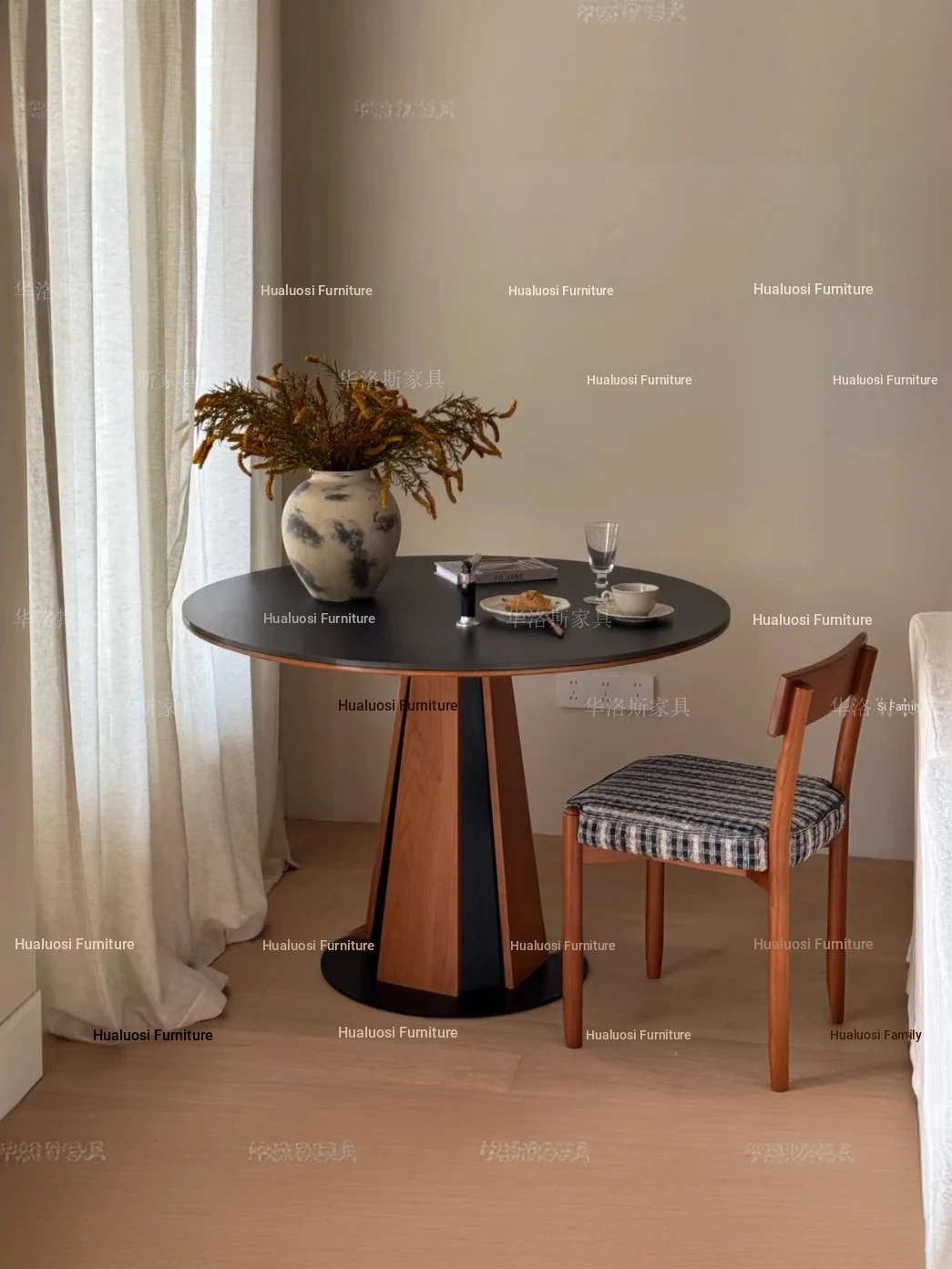 Modern Minimalist Round Dining Table with Natural Wood Cream Finish - Perfect for Small Spaces and Cozy Gatherings, Ideal for Homes and Boutique Hotels.