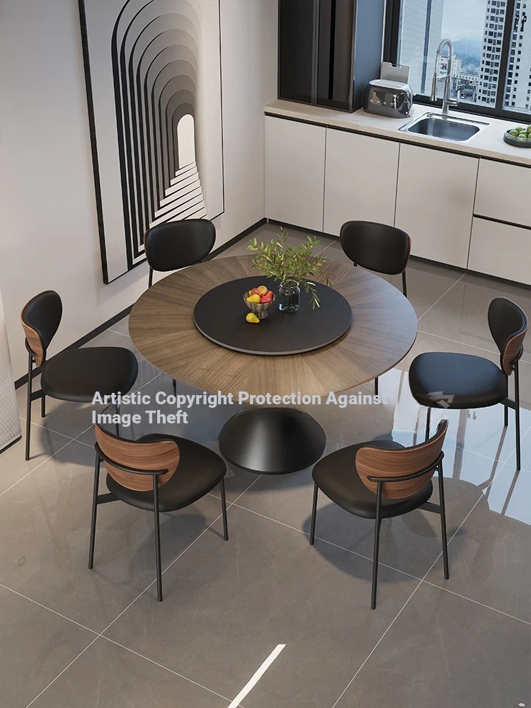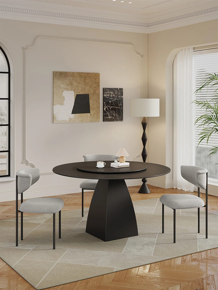 2024 New Italian Minimalist Round Dining Table – Black French Vintage Style for 10 People with Rotating Tray – Perfect for Modern Homes