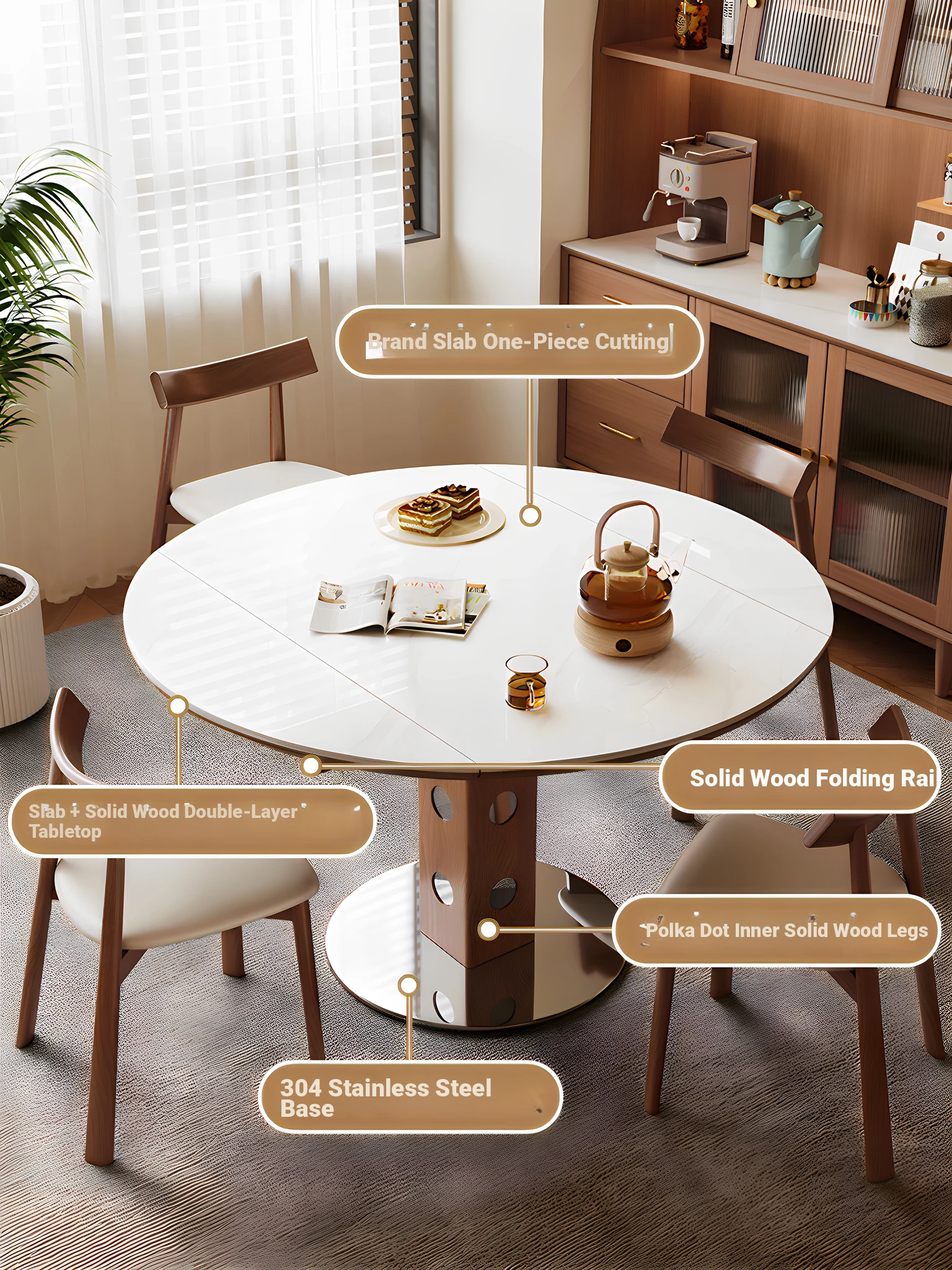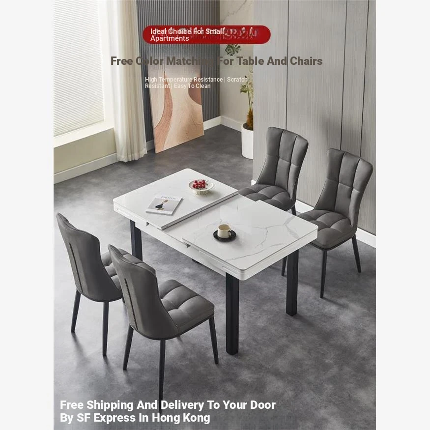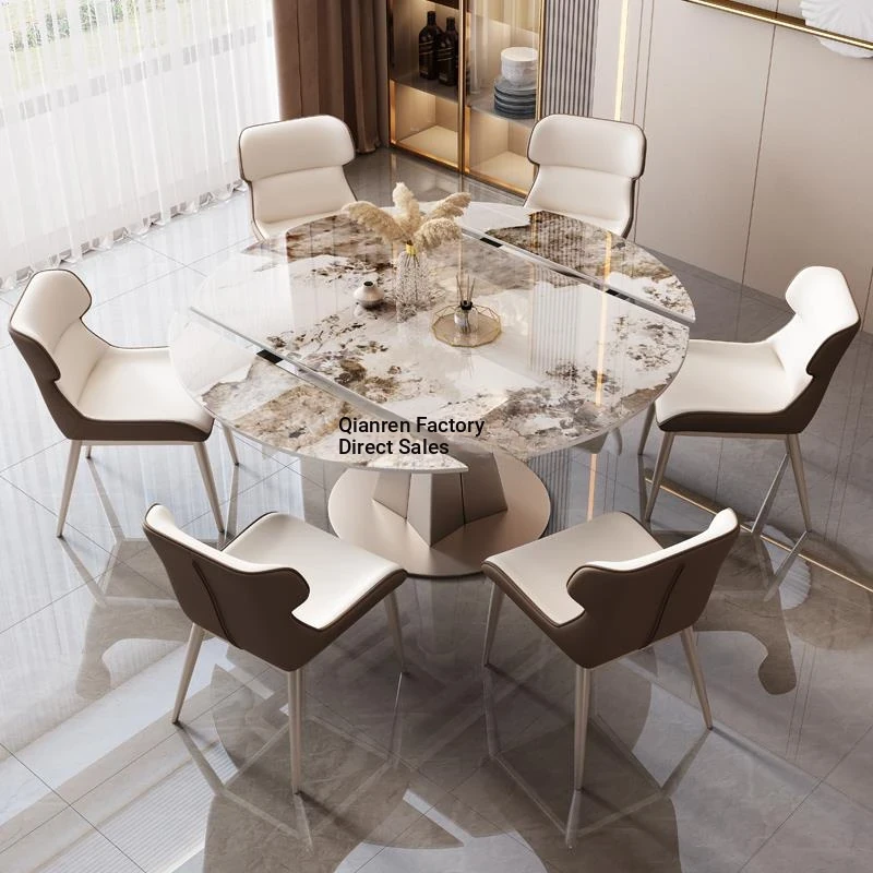 "Free Shipping in Hong Kong: Modern Minimalist Luxury Rock Plate Dining Table and Chair Set - Versatile Expandable Round Table for Home Use"