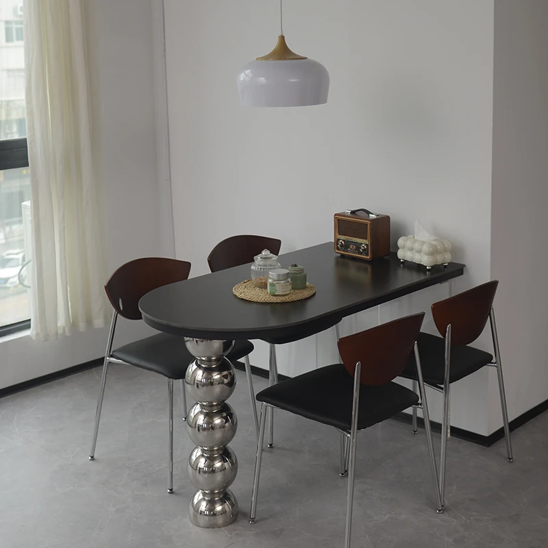 Stylish Solid Wood Rock Plate Dining Table for Small Spaces - Trendy Cream-Colored Half-Elliptical Wall-Mounted Acrylic Floating Island Table for Home Use