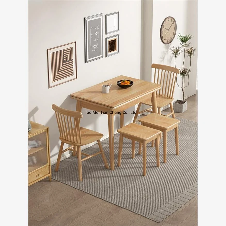 "Modern Minimalist Solid Wood Extendable Dining Table and Chair Set - Foldable, Perfect for Small Spaces, Ideal for Home Use"