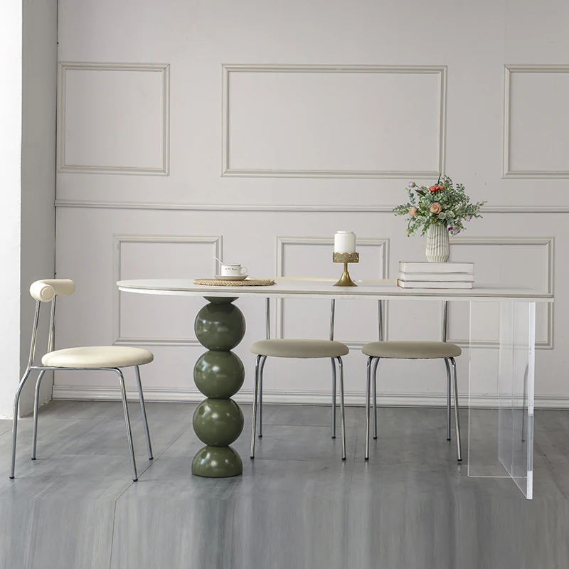 2023 New Creamy Style Rock Slab Dining Table - Trendy French Half-Round Wall-Mounted Table for Small Spaces