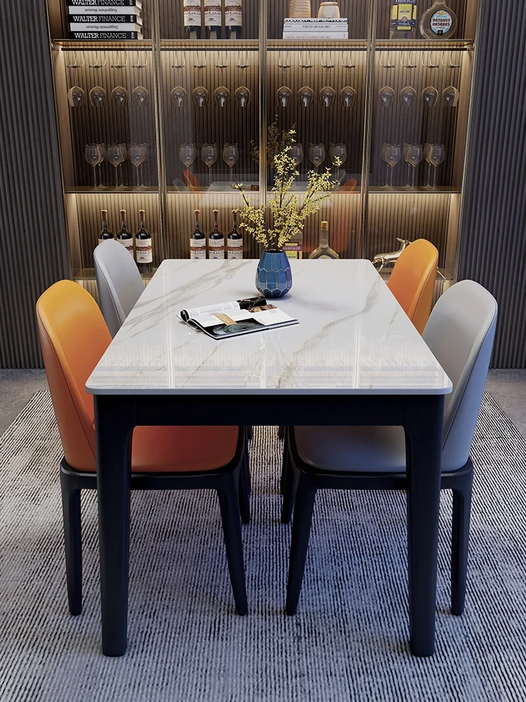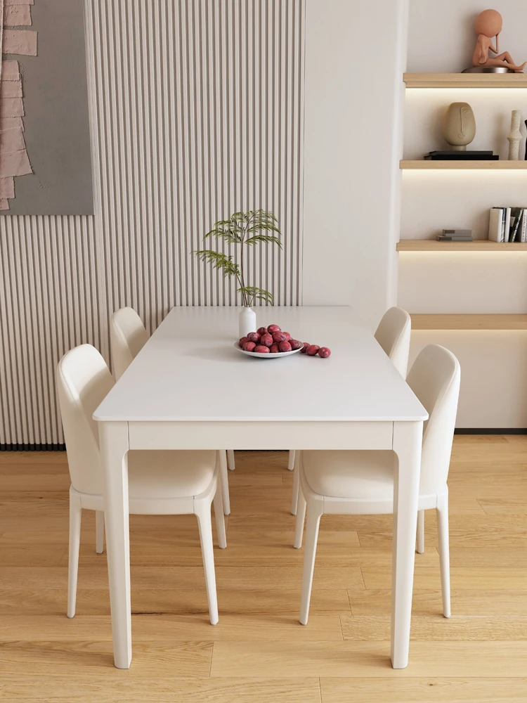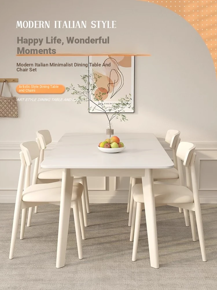 Antibacterial Full-Support Rock Plate Dining Table and Chair Set - Modern Minimalist Rectangular Dining Table for Small Spaces, Perfect for Home Use