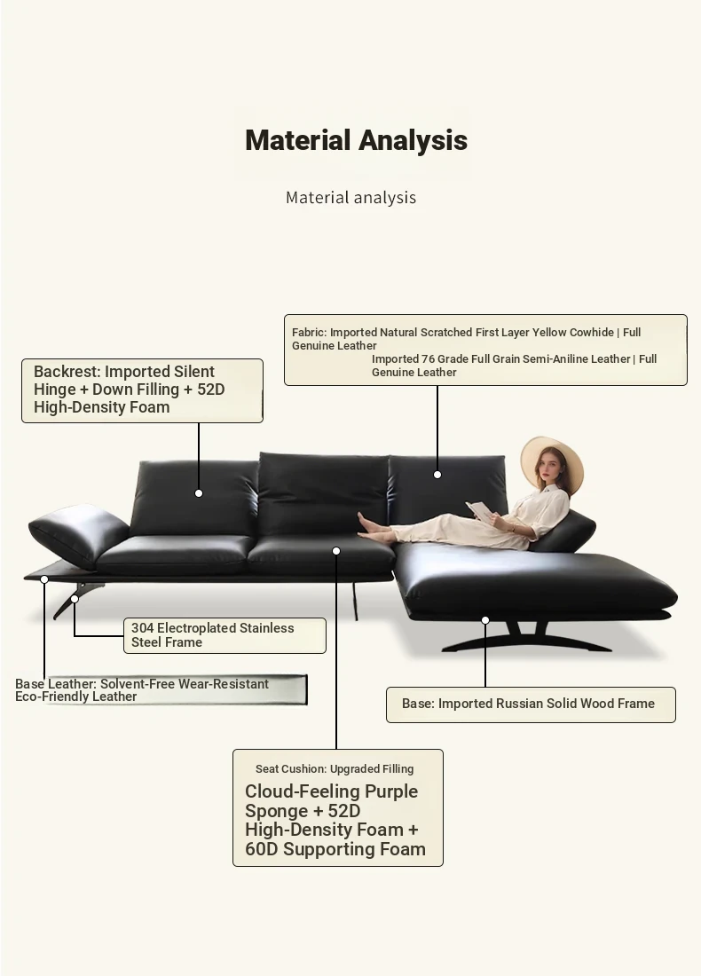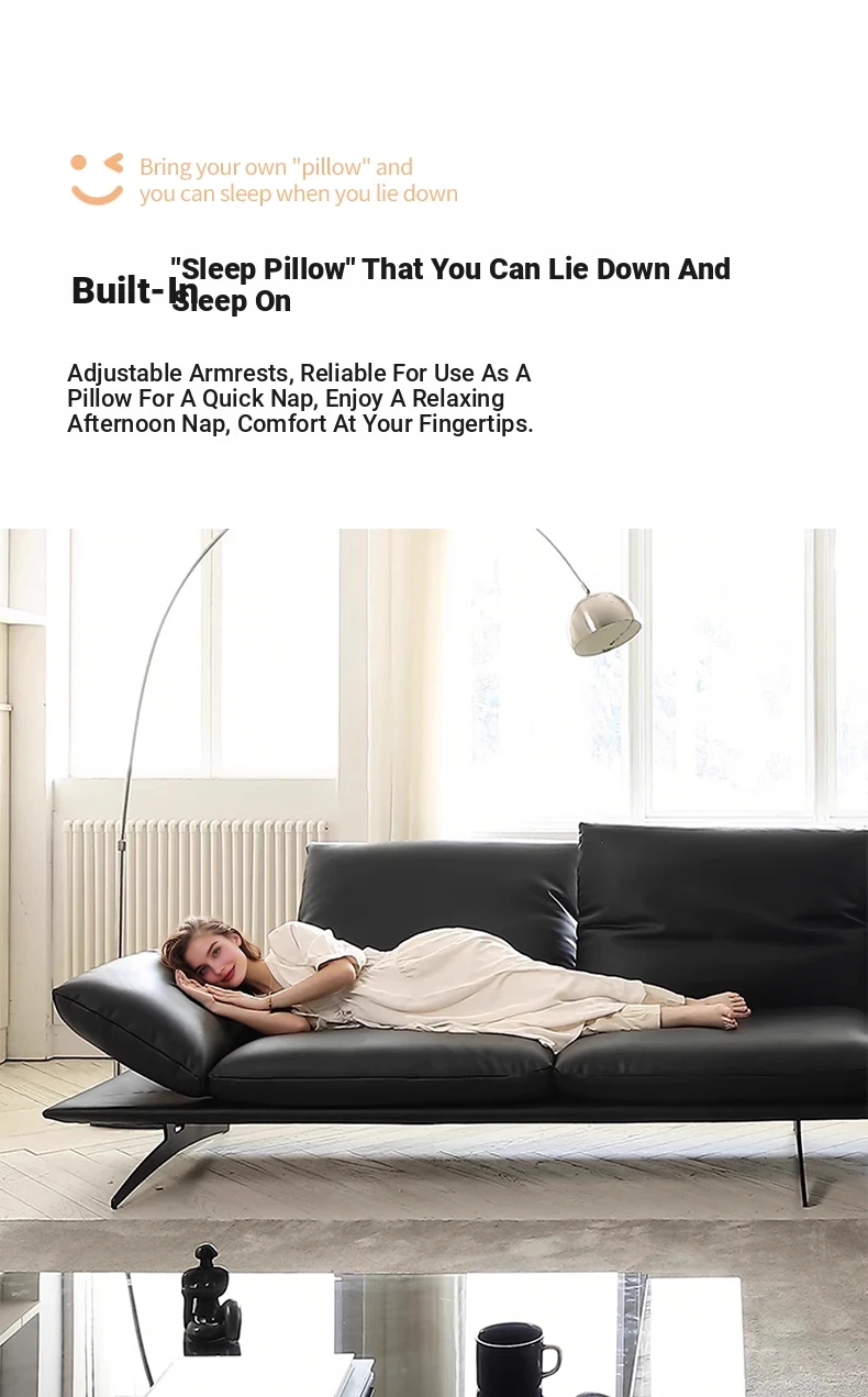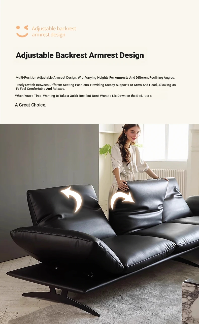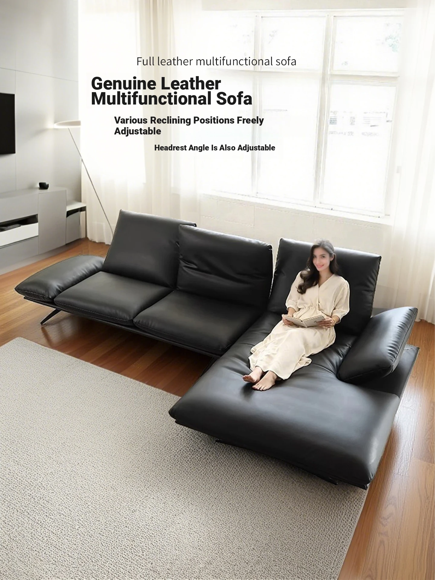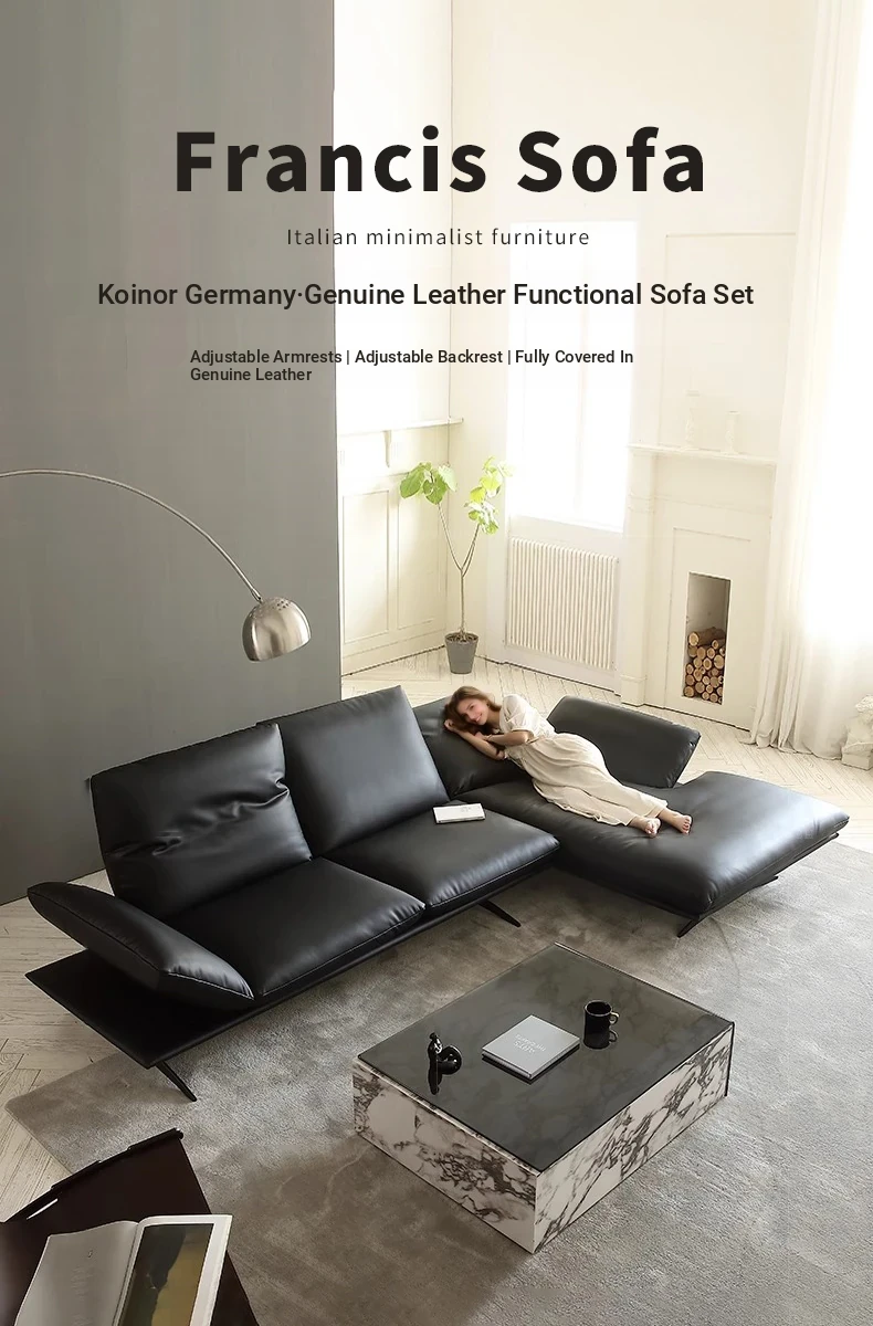 2025 New Genuine Leather Sofa with Adjustable Backrest and Armrests - Minimalist Functional Design by German Koinor, Perfect for Relaxing and Sleeping