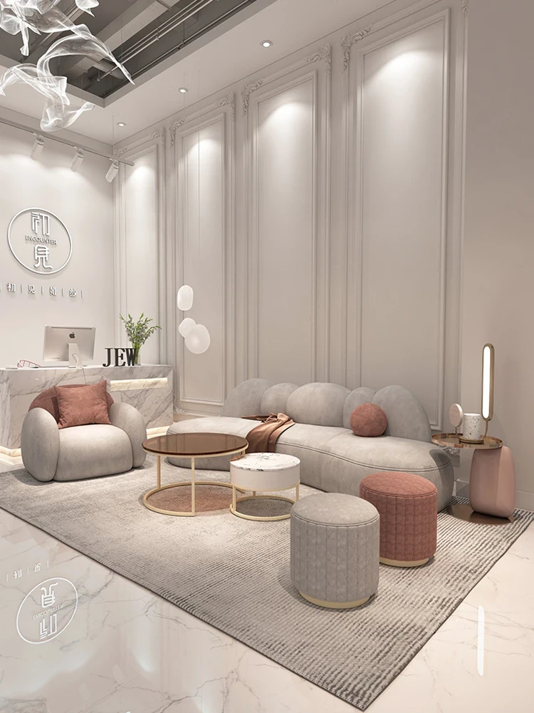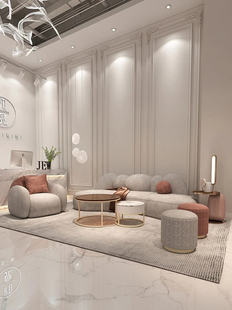 Creative Curved Sofa for Beauty Salon Reception Area - Stylish Lounge Seating for Wedding Dress Stores and Waiting Rooms