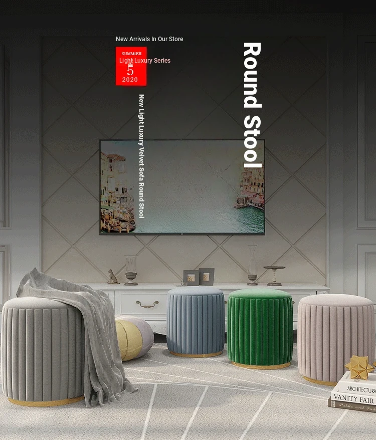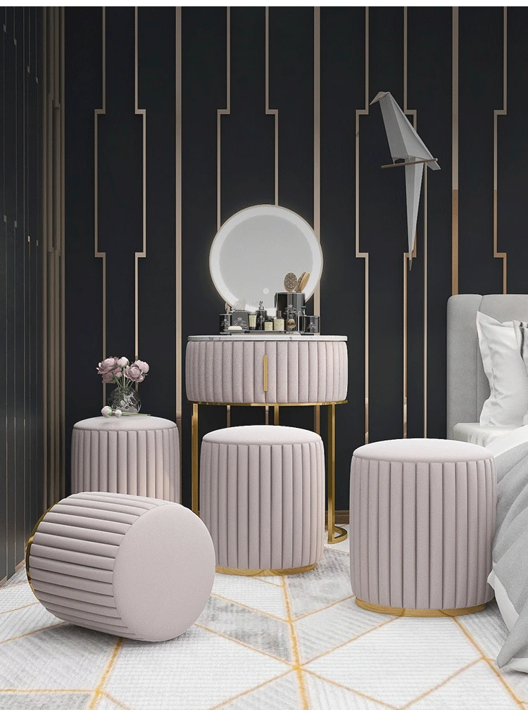 Nordic Minimalist Vanity Stool - Stylish Mini Makeup Chair for Bedroom, Chic Sofa & Shoe Changing Seat, Trendy Round Stool for Living Room