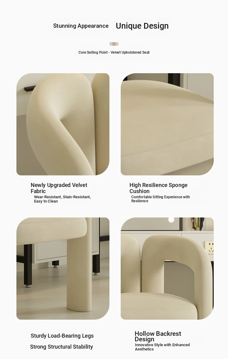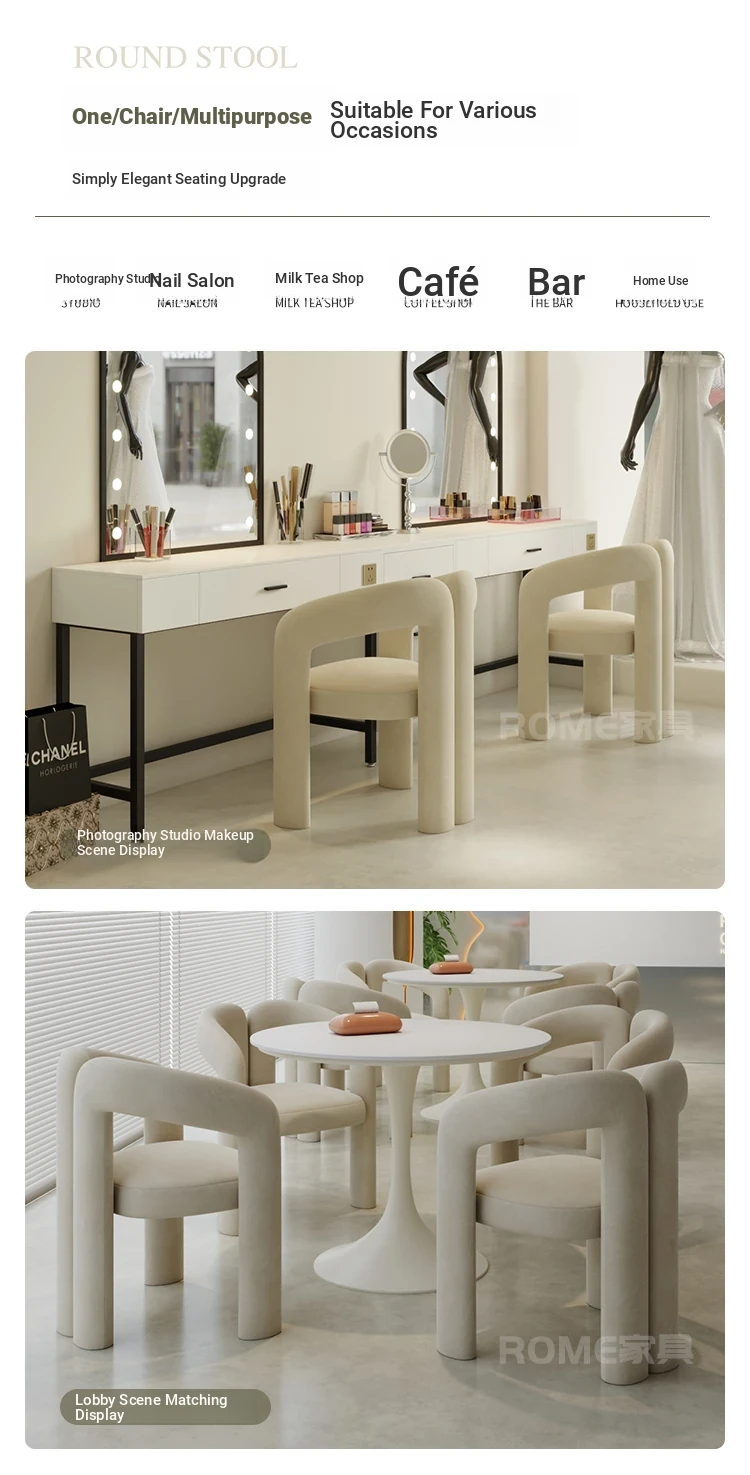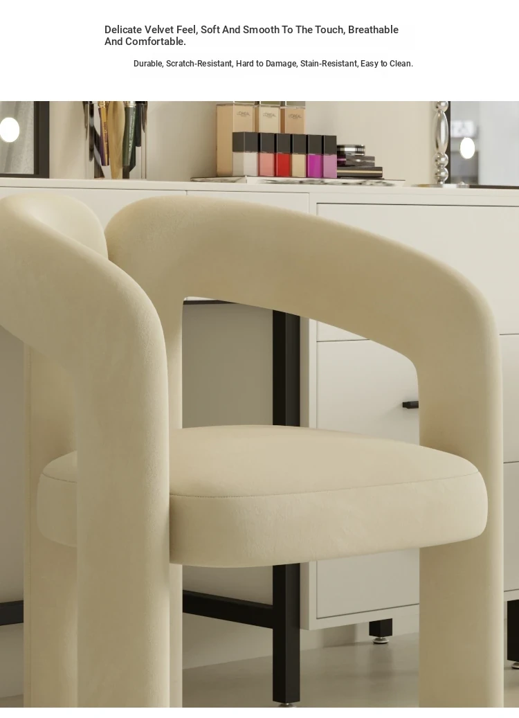 Trendy Cream-Style Makeup Chair - Modern Minimalist Luxury Vanity Stool for Makeup Stations and Reception Areas
