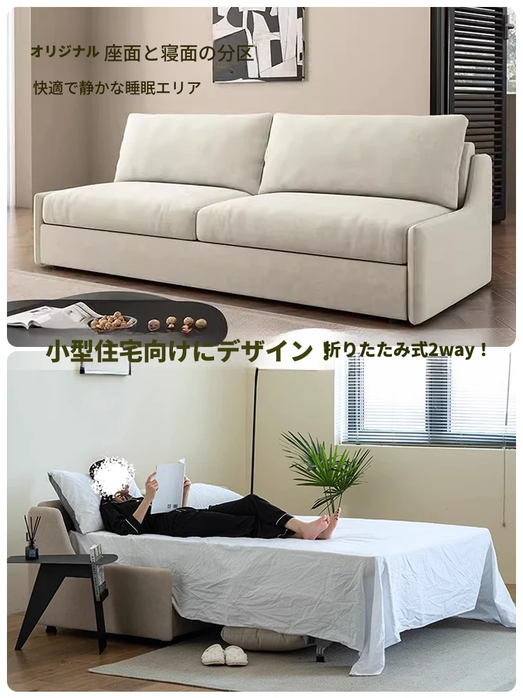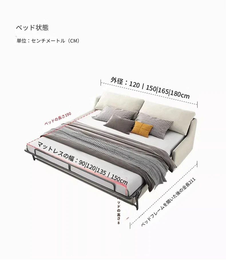 1.80メートルソファベッド|マットレス付き【折りたたみ二用途】