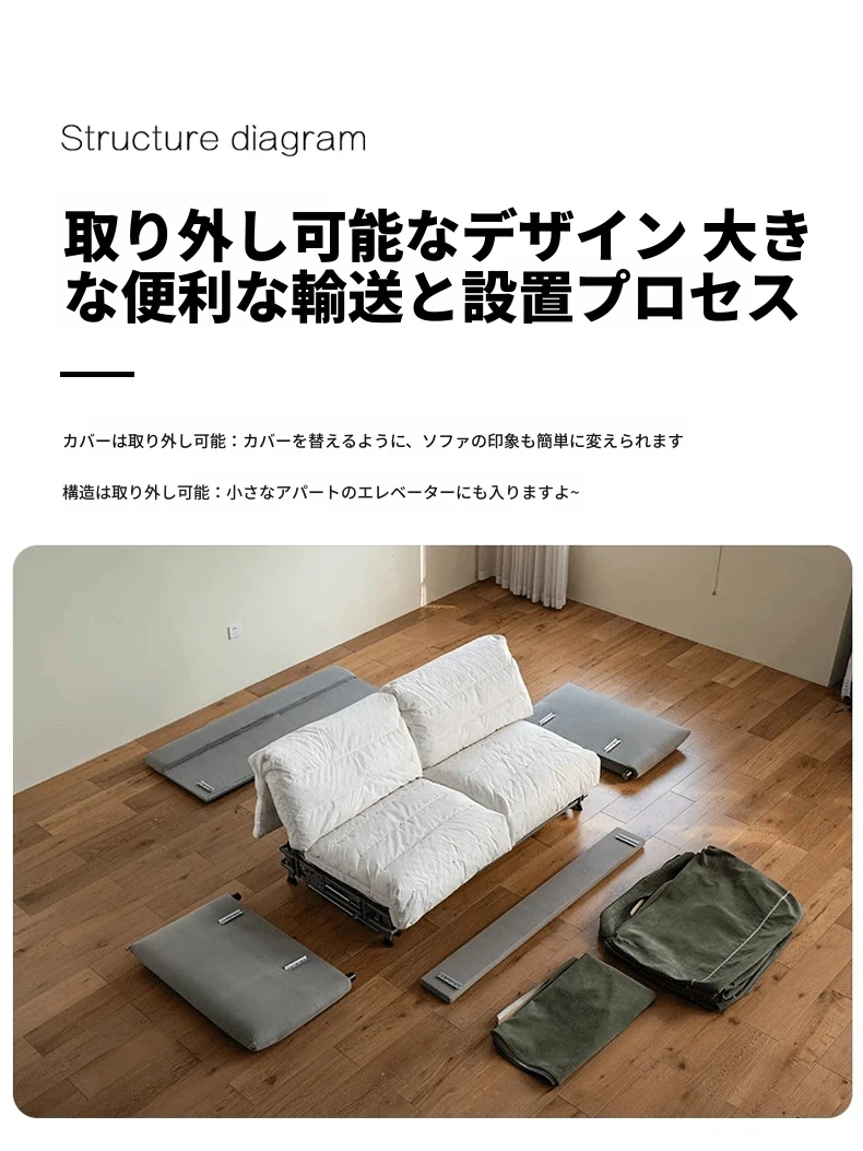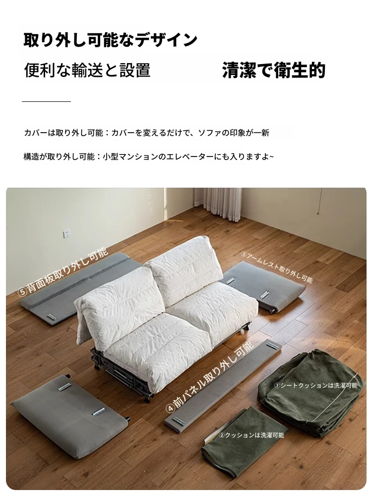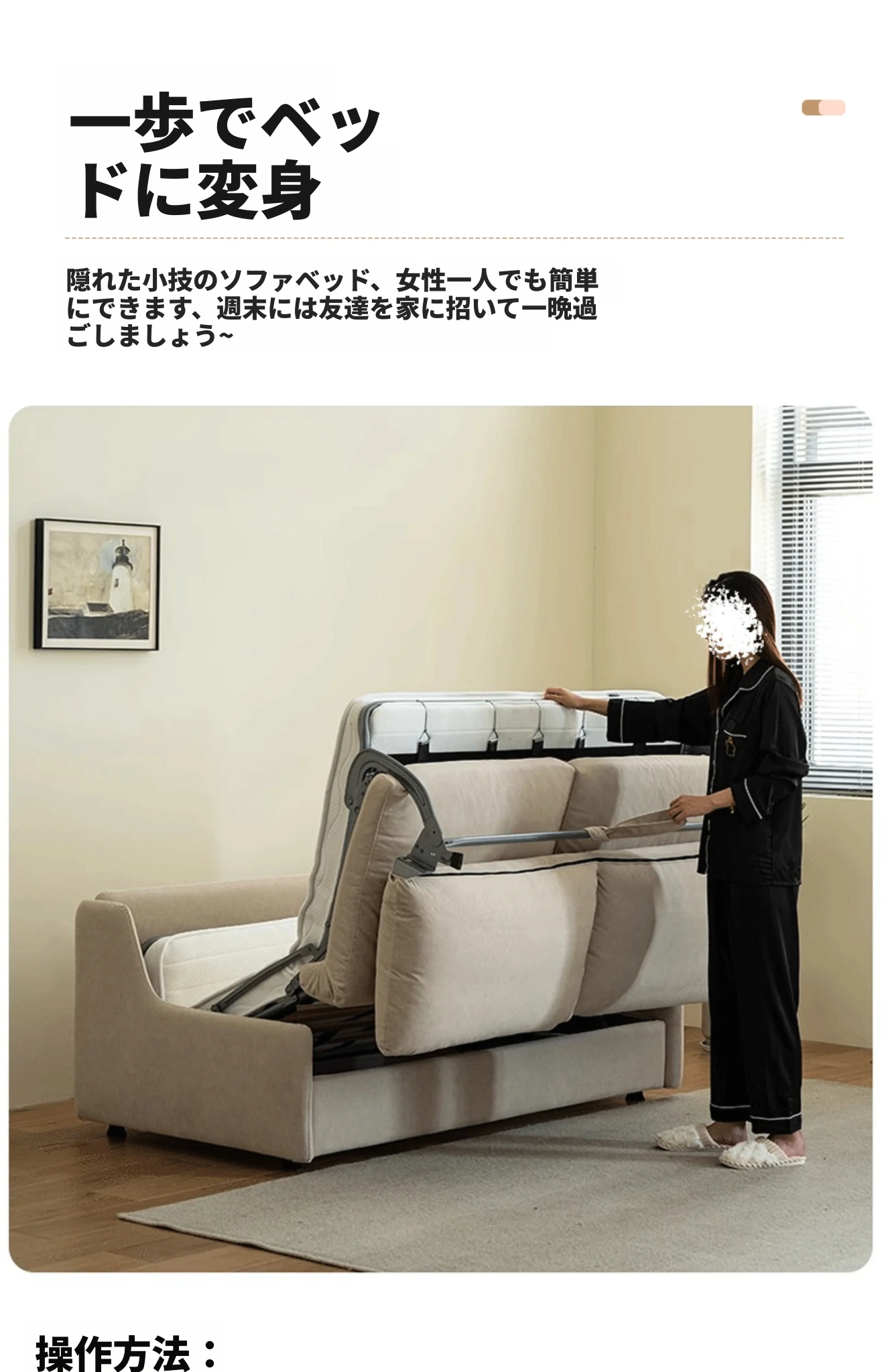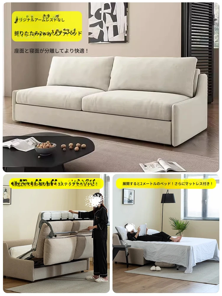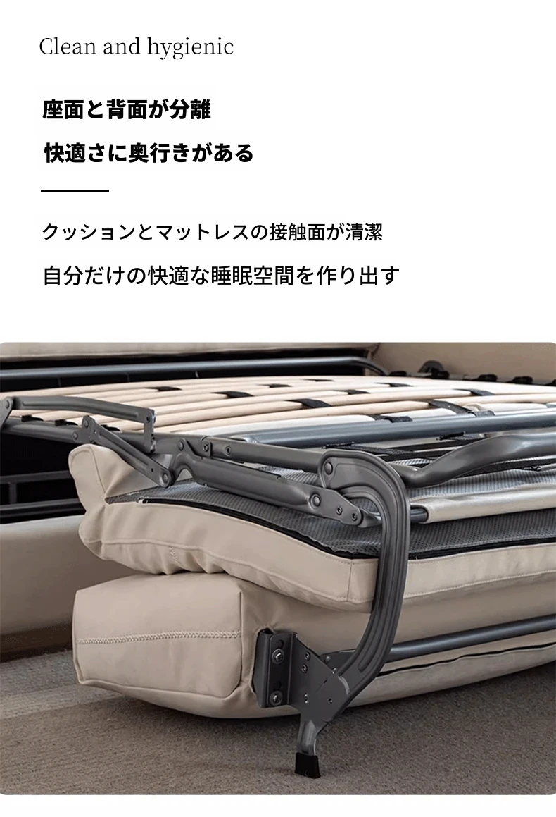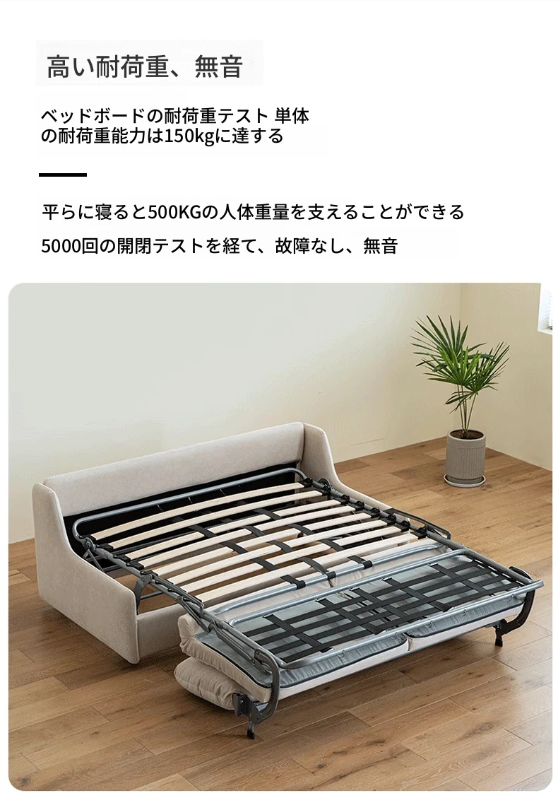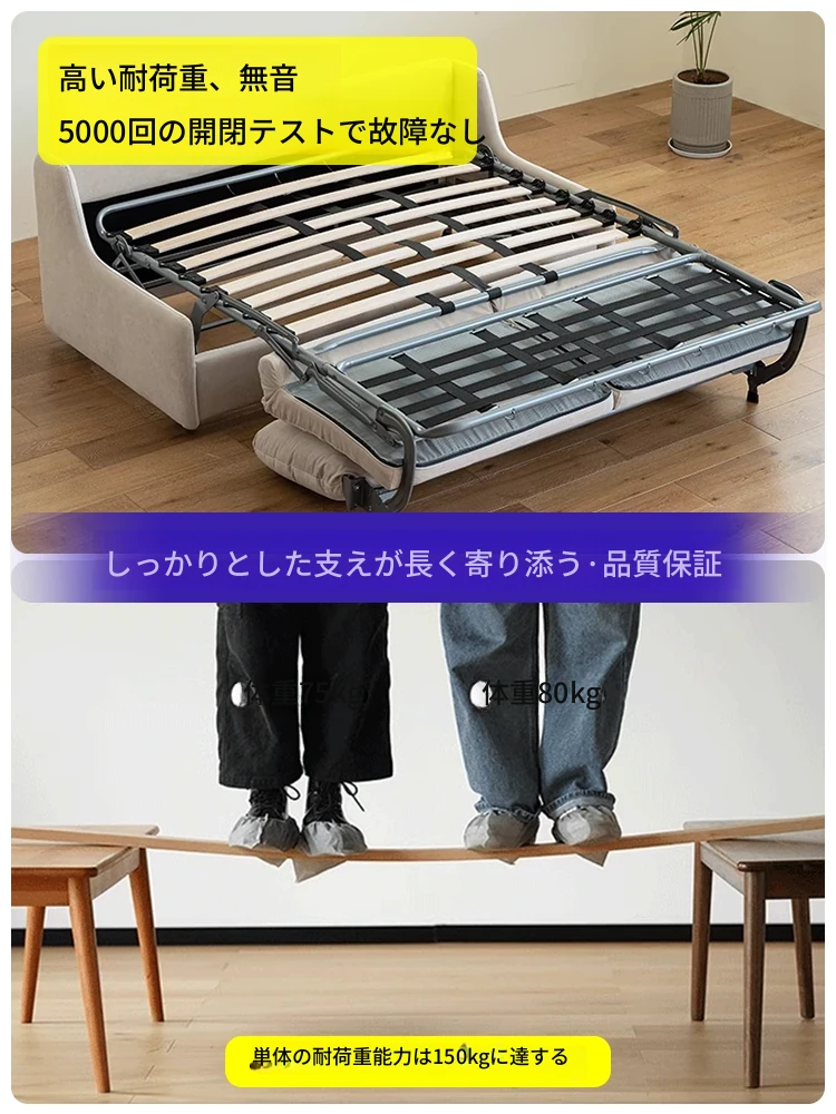【在庫あり、7日以内発送】1.50メートルソファベッド|マットレス付き【折りたたみ二用途】