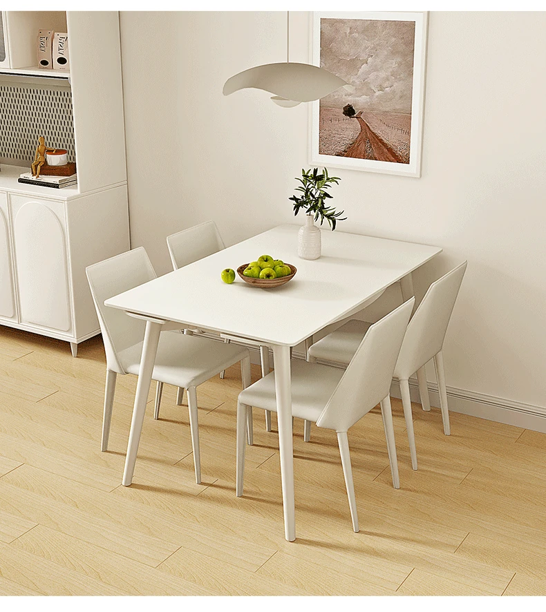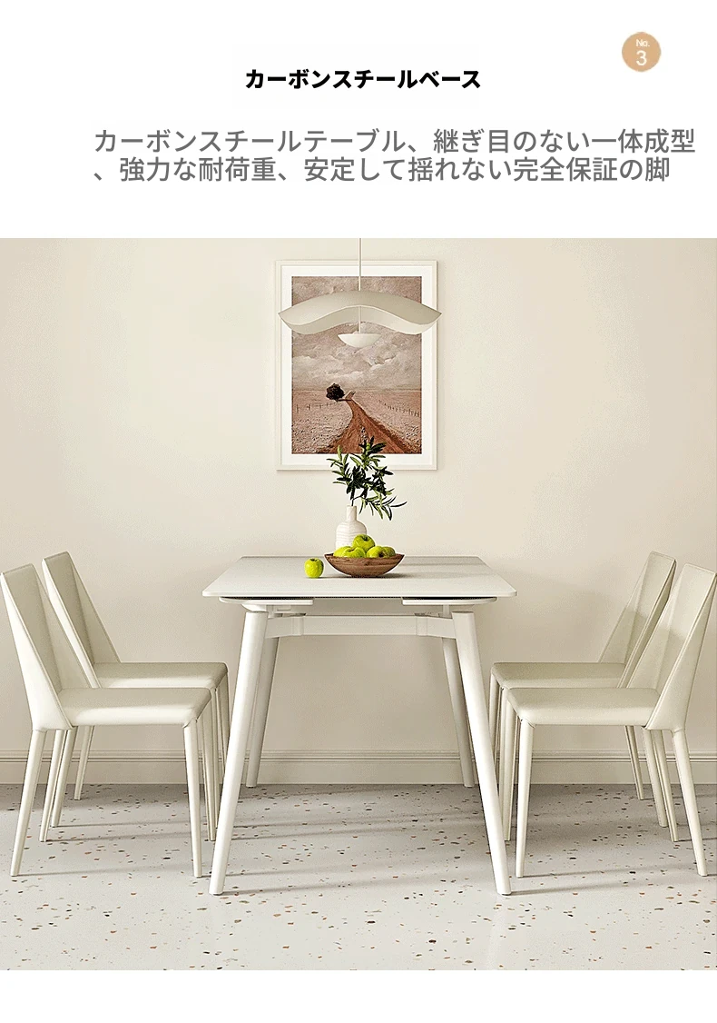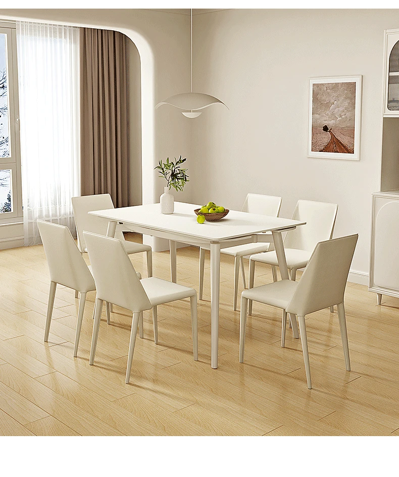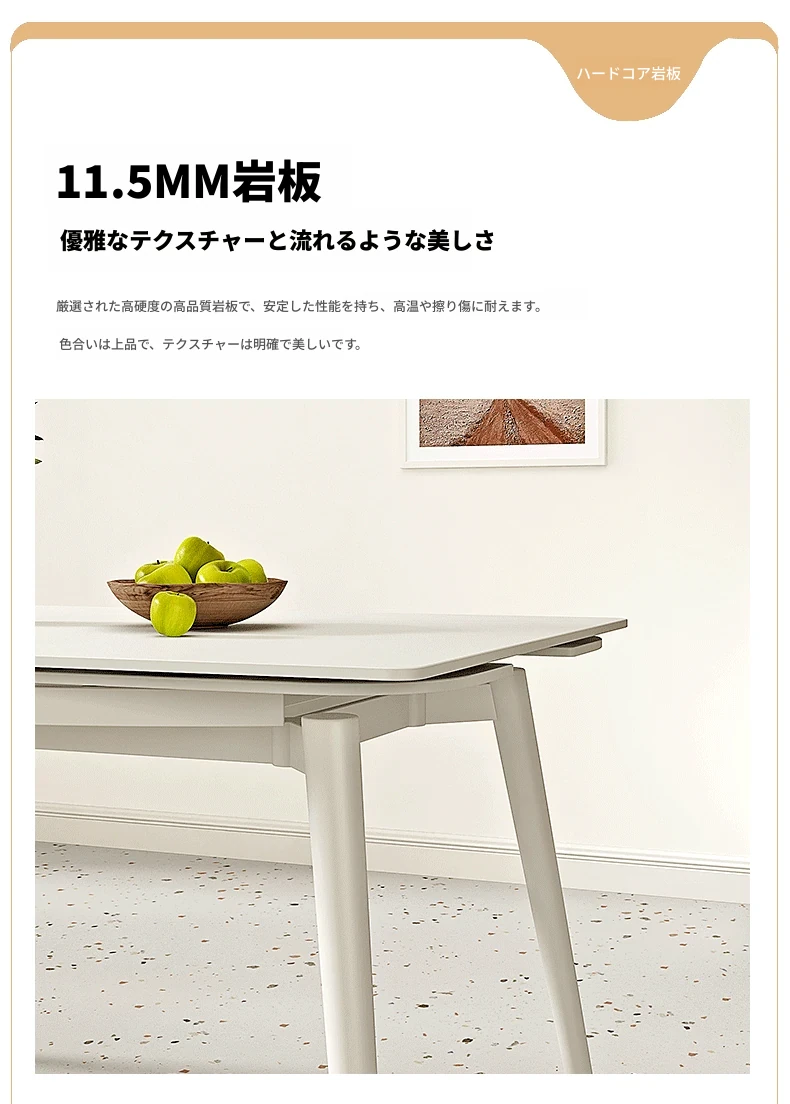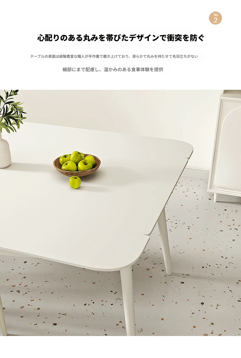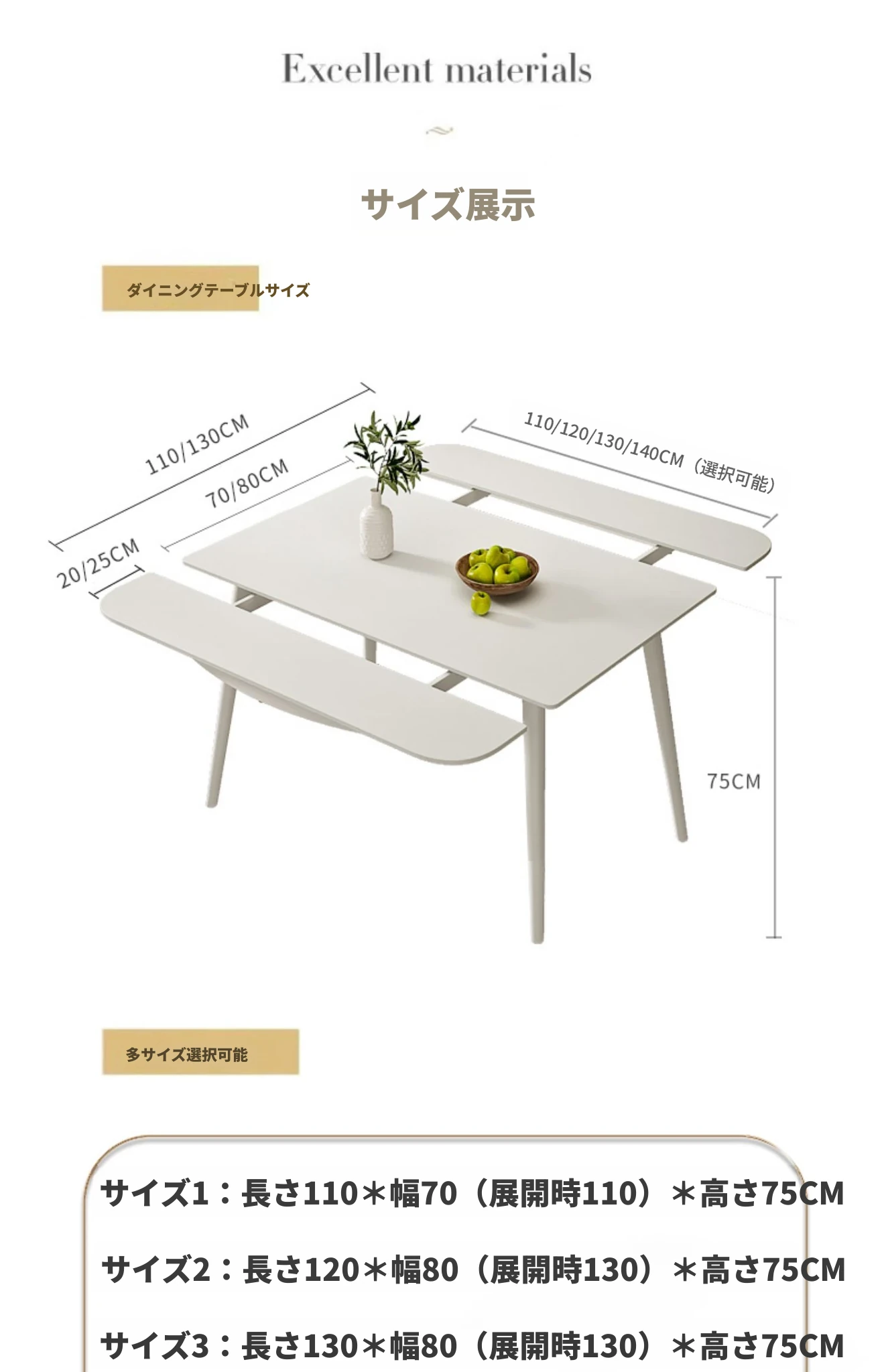 クリーム風の岩板ダイニングテーブル - 小型住宅向け、折りたたみ式・伸縮可能な正方形テーブル。2024年新モデル、丸型にも変形可!おしゃれで機能的なデザインで、食事の時間を特別なものに。