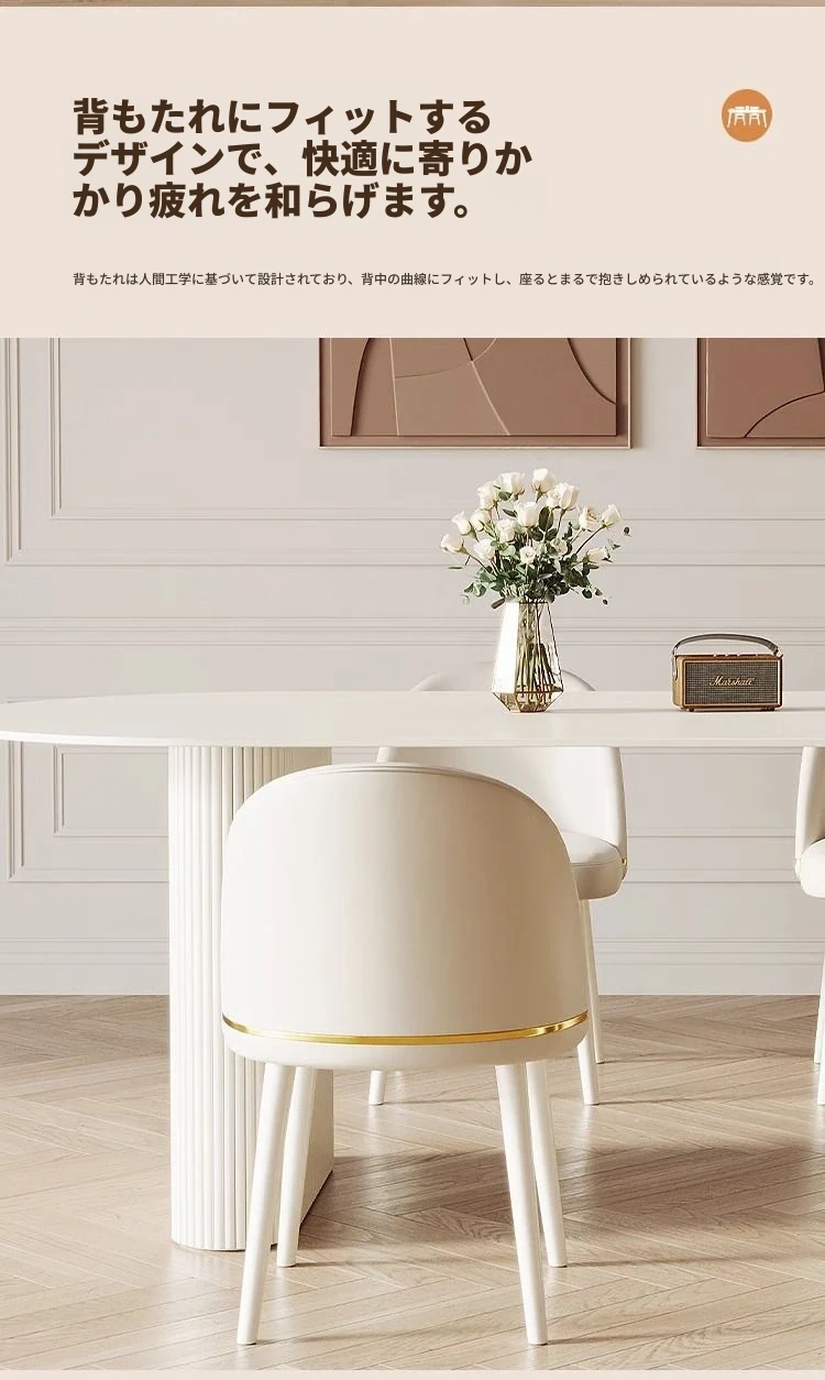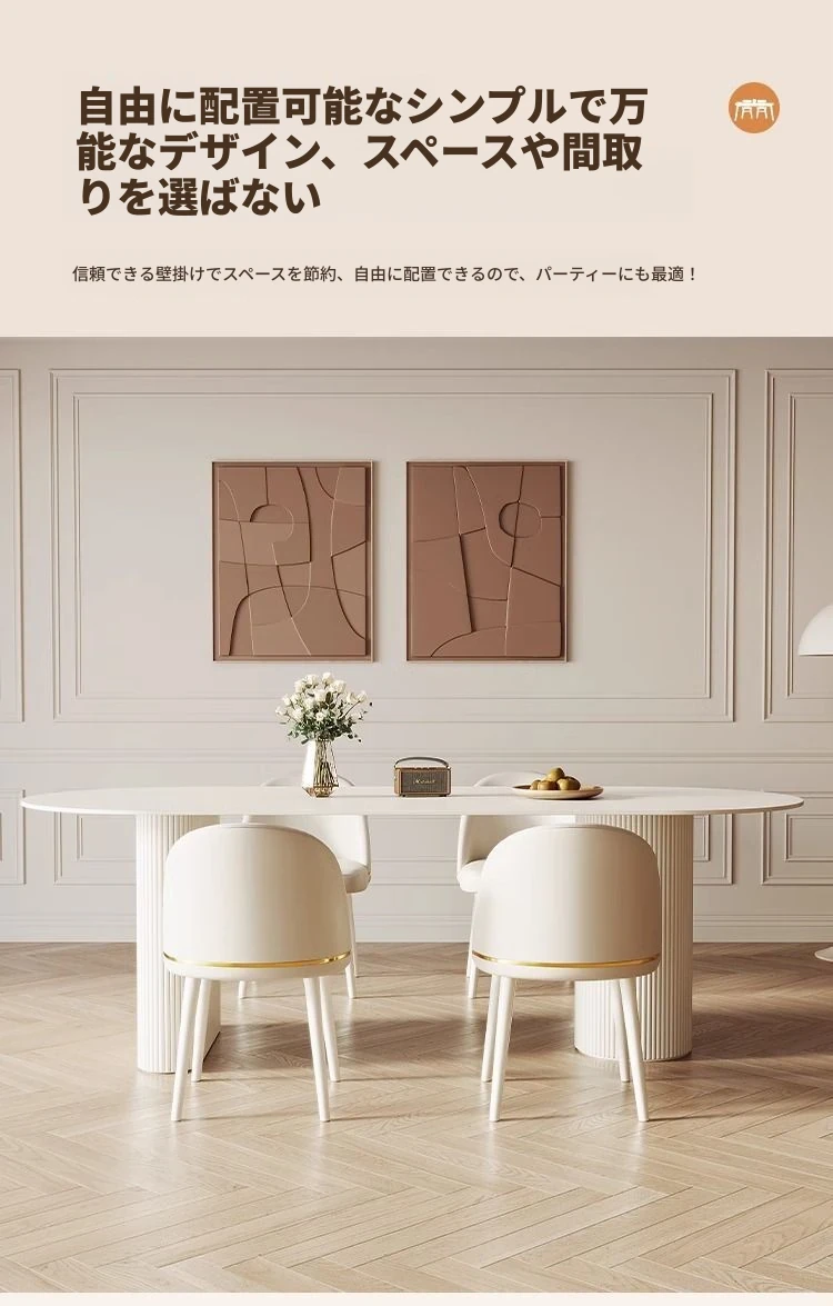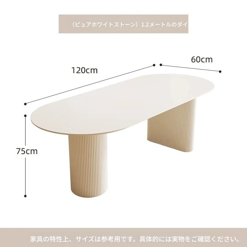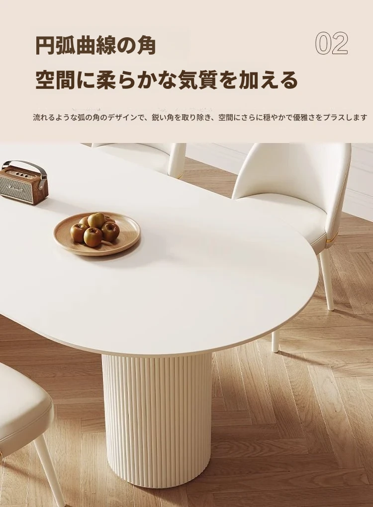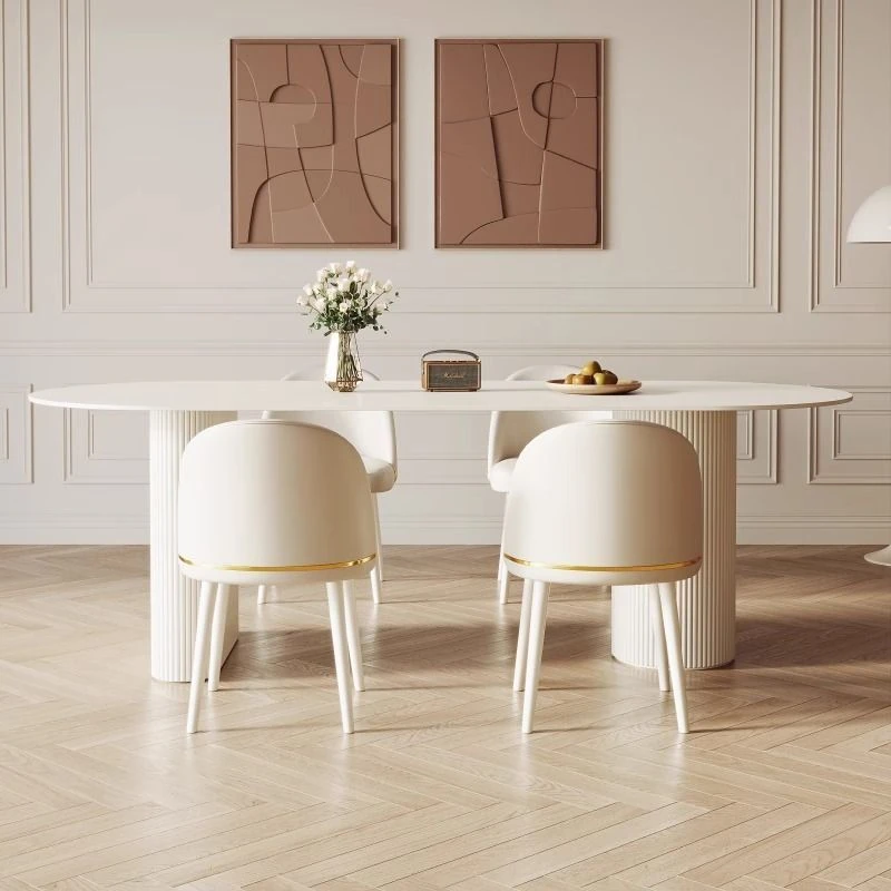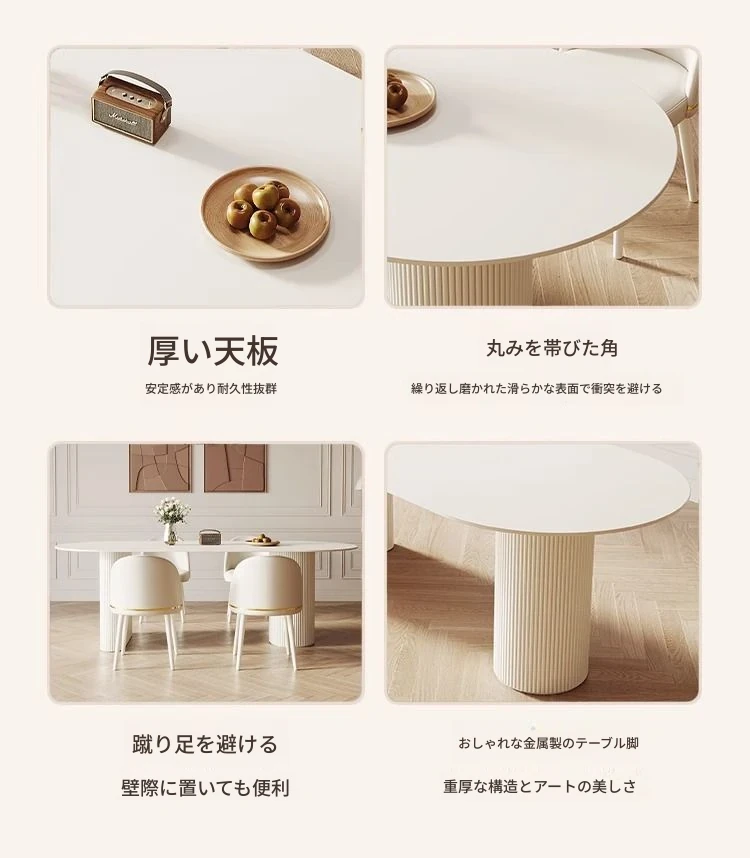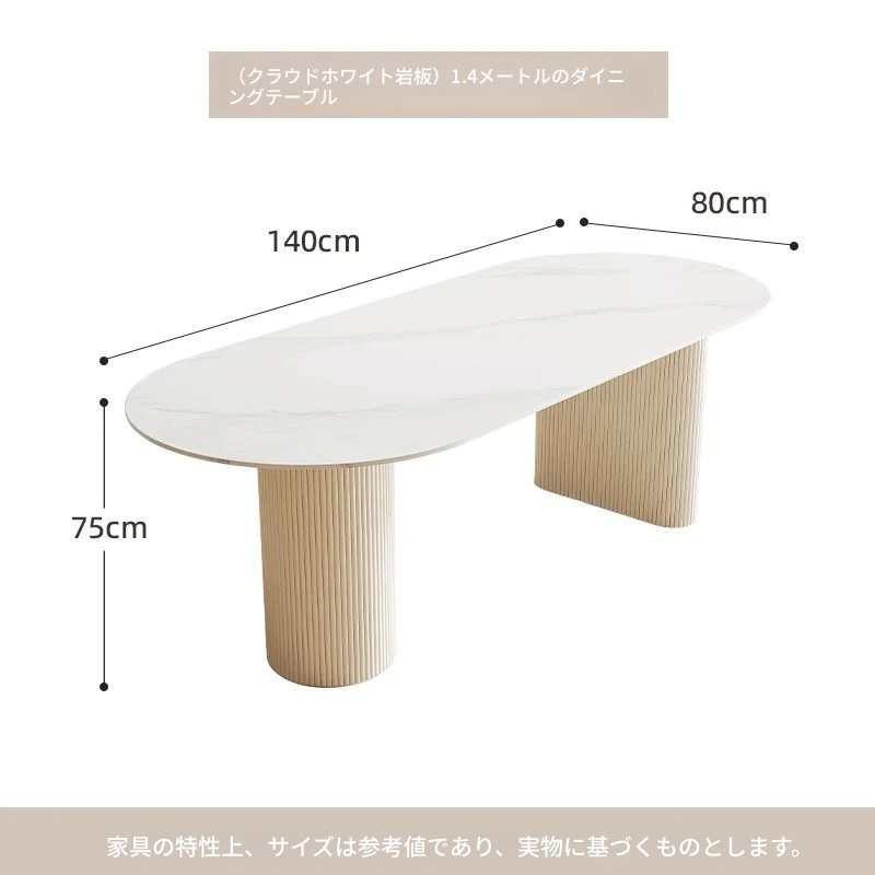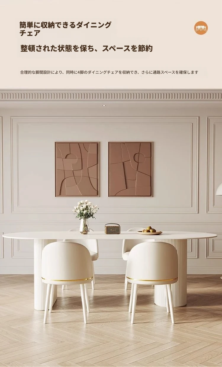 クリームホワイトの純白い岩板ダイニングテーブル - 家庭用、小型スペースに最適な軽やかでラグジュアリーな現代的エレガントデザインの楕円形テーブル&チェアセット!