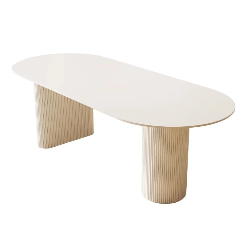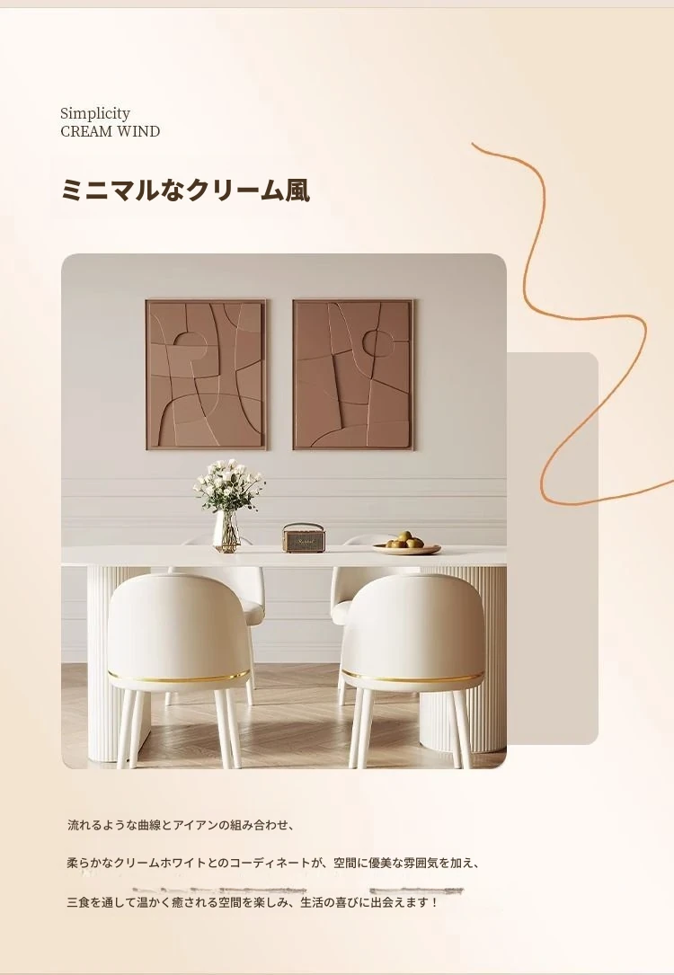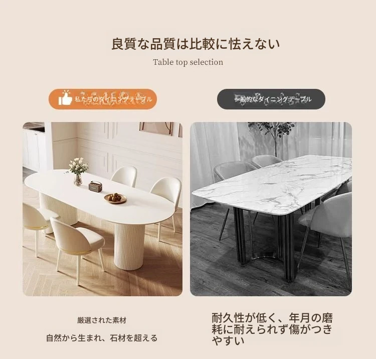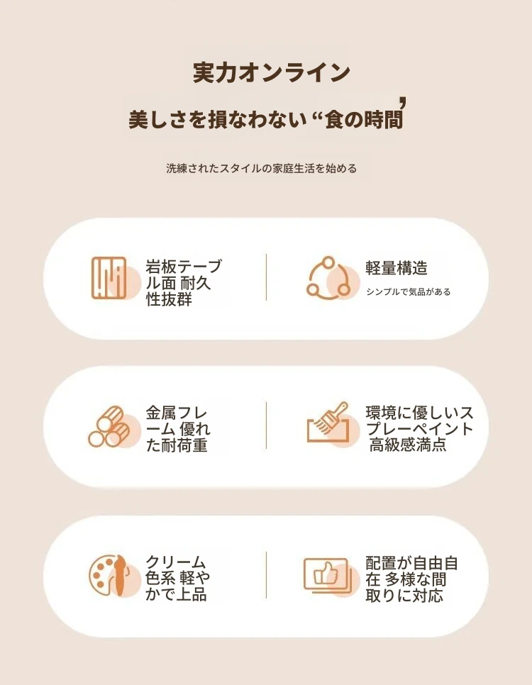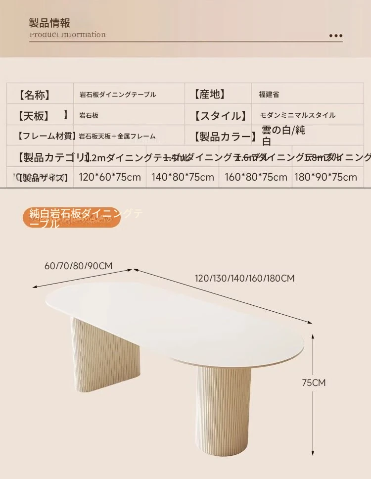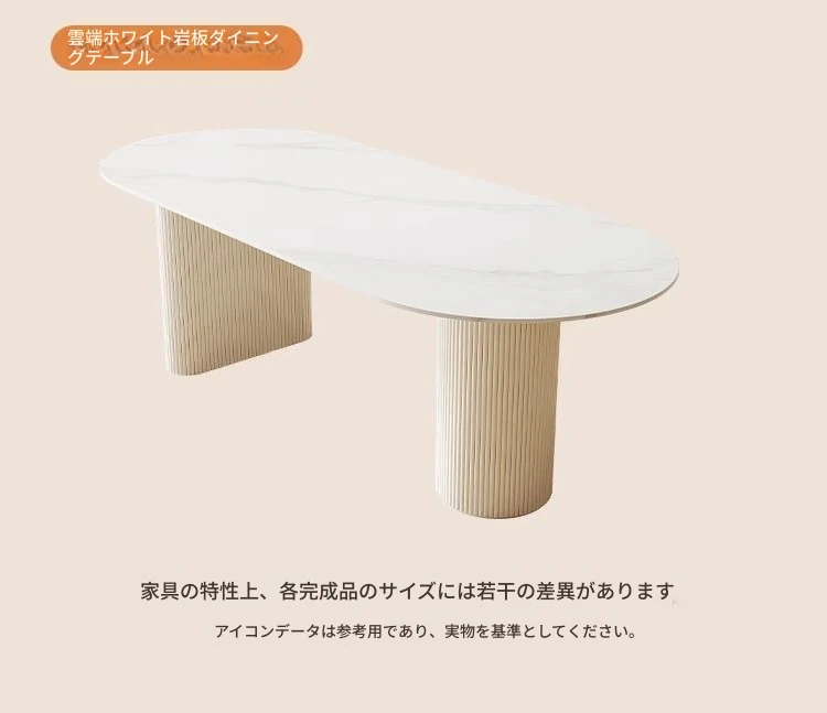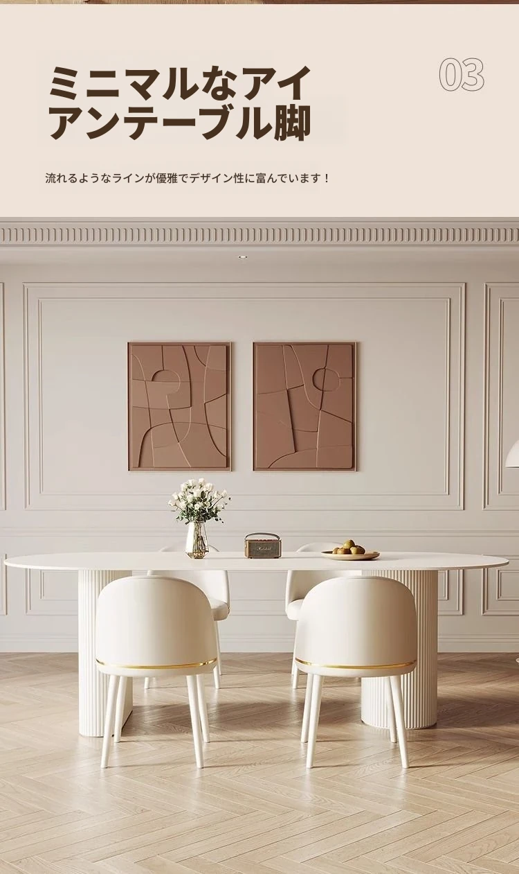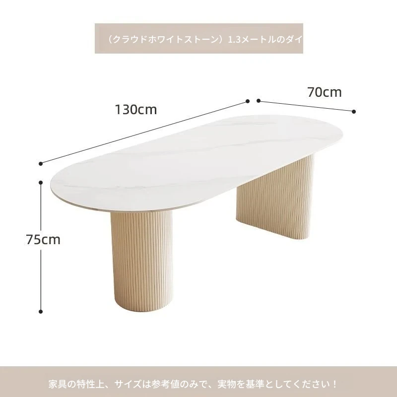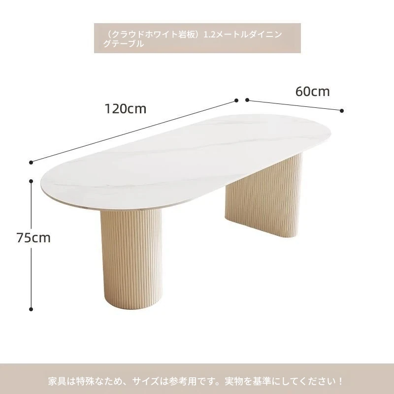 クリームホワイトの純白い岩板ダイニングテーブル - 家庭用、小型スペースに最適な軽やかでラグジュアリーな現代的エレガントデザインの楕円形テーブル&チェアセット!