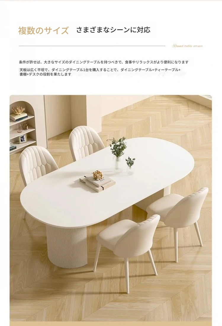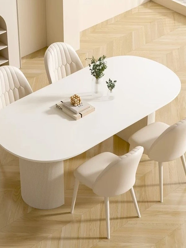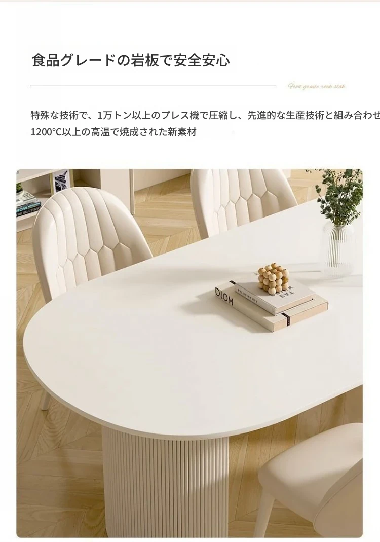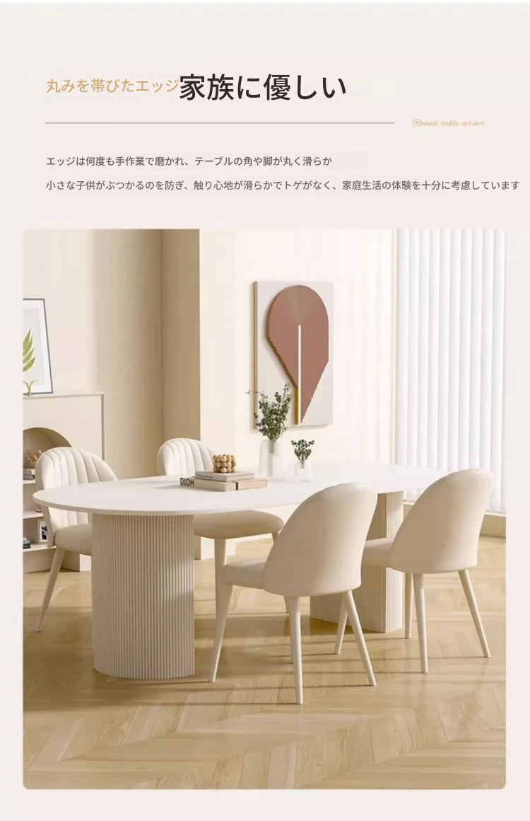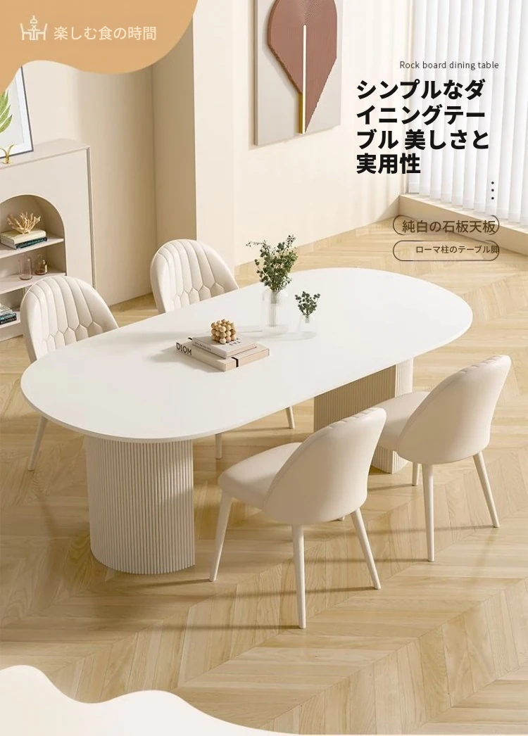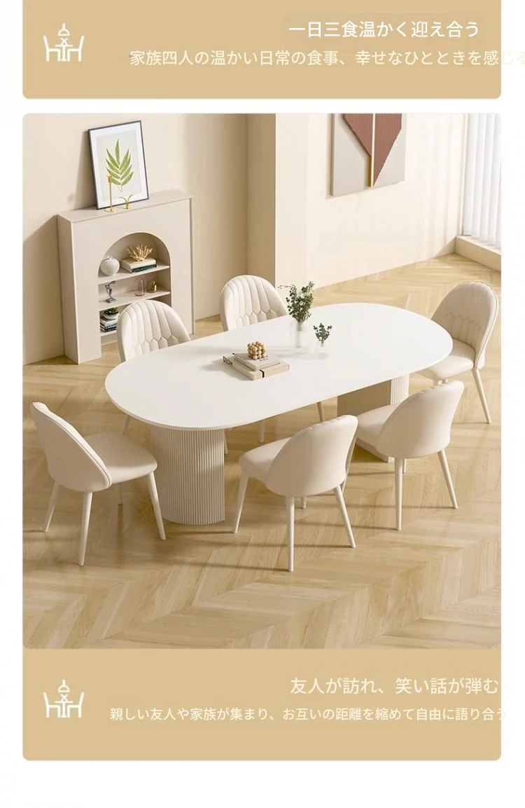 クリーム風味の純白の岩板ダイニングテーブル|小さな家にぴったりな軽奢モダンデザイン|トレンド感あふれるエレガントな楕円形テーブルと椅子のセット!