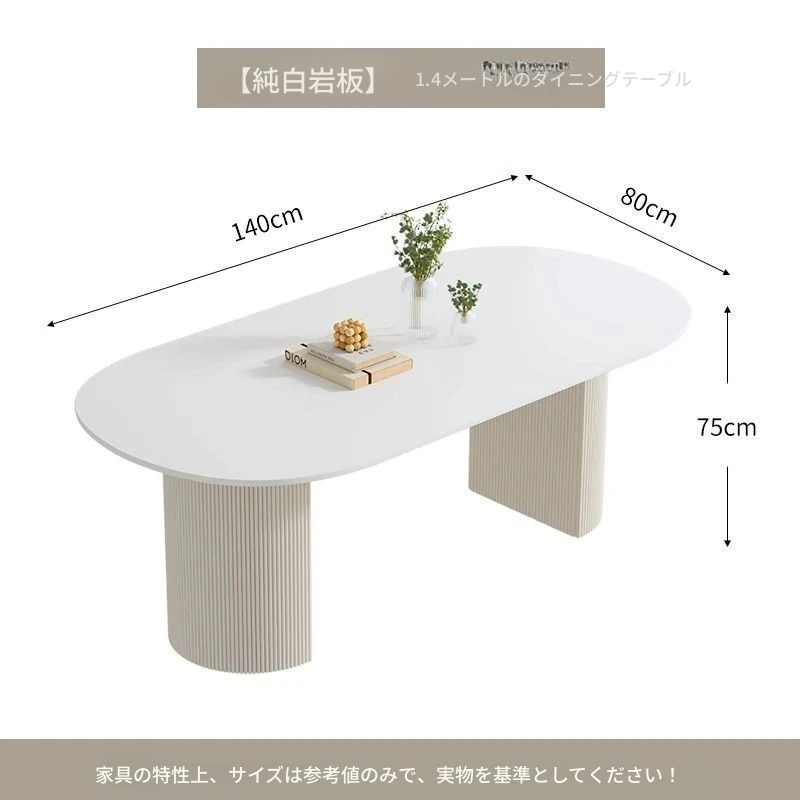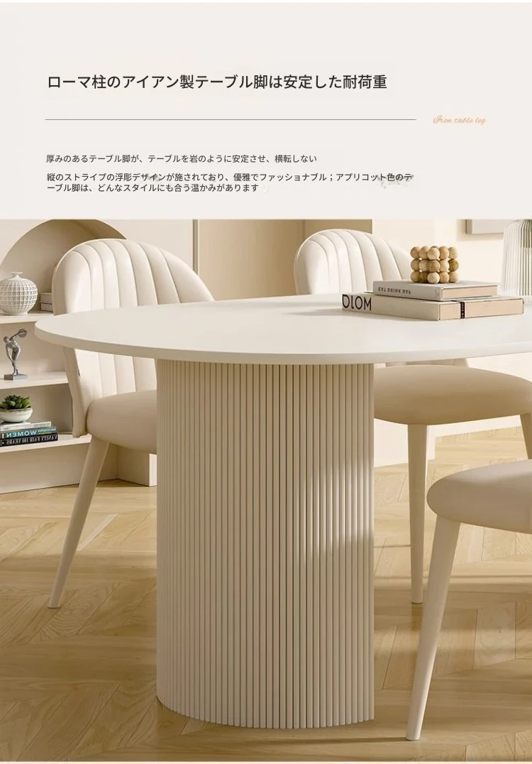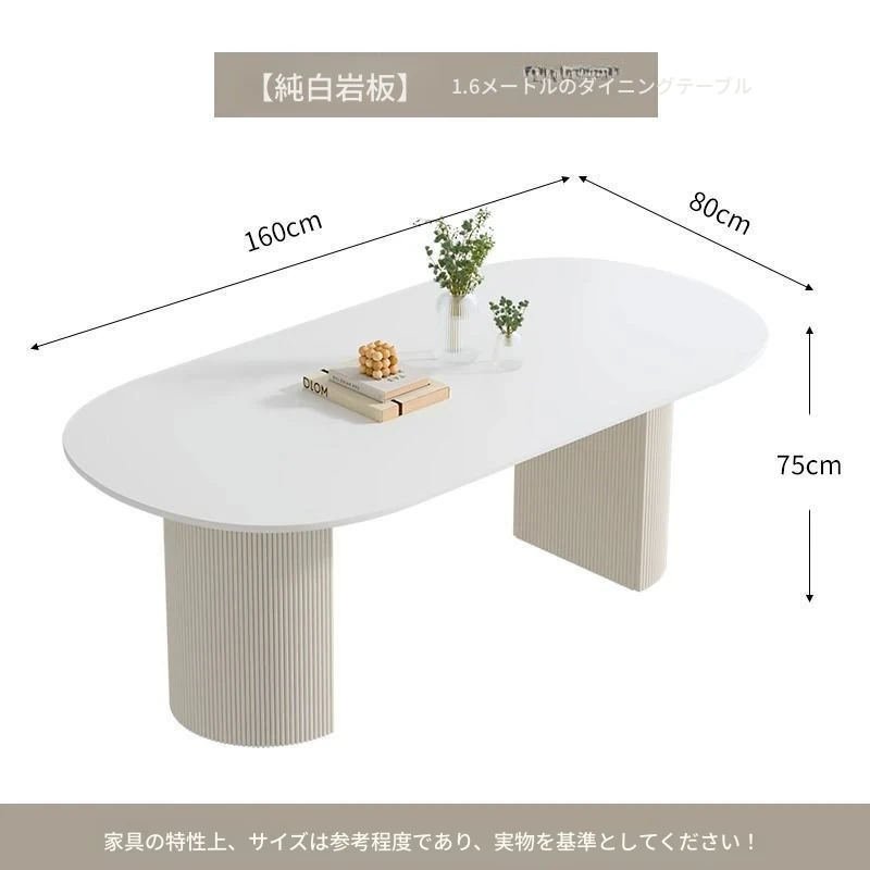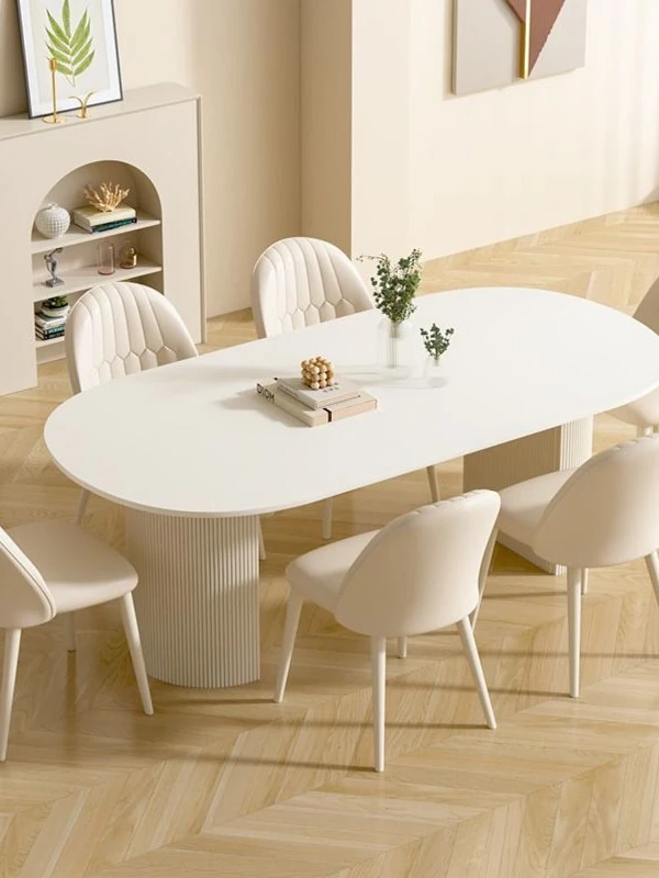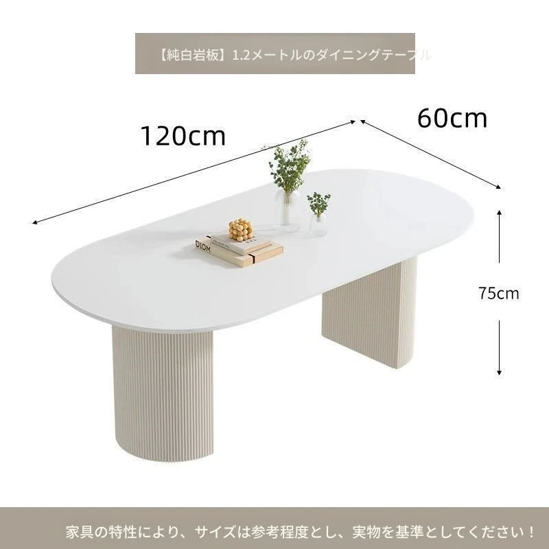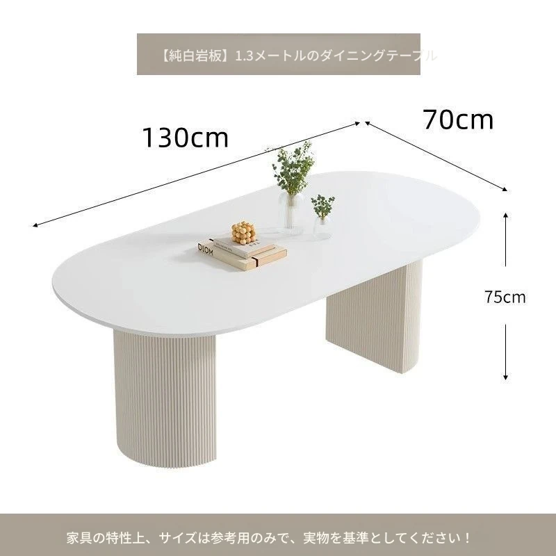 クリーム風味の純白の岩板ダイニングテーブル|小さな家にぴったりな軽奢モダンデザイン|トレンド感あふれるエレガントな楕円形テーブルと椅子のセット!