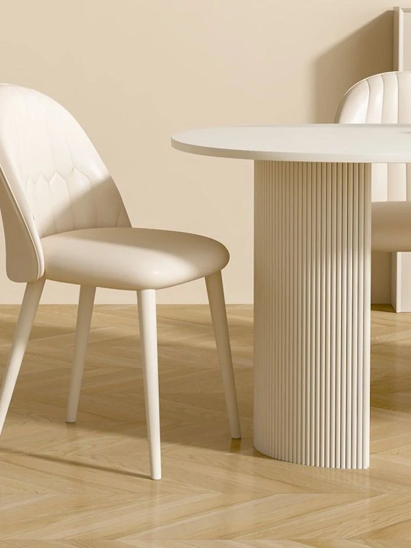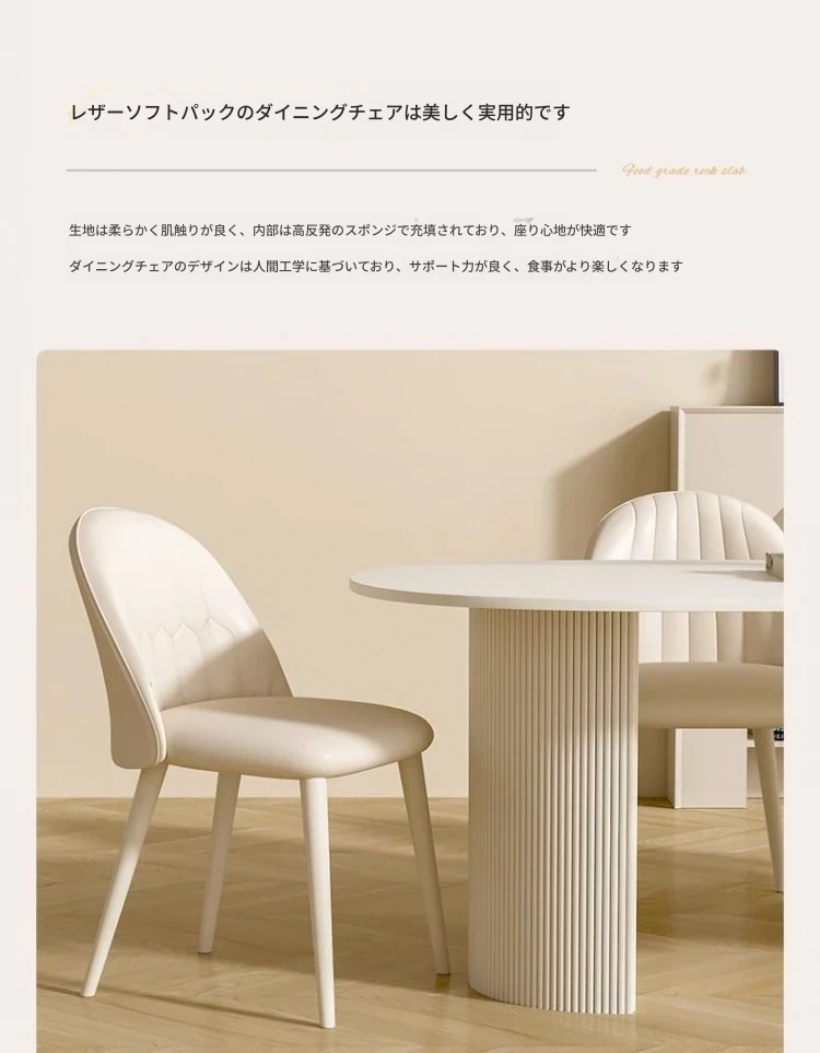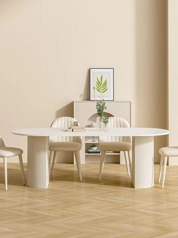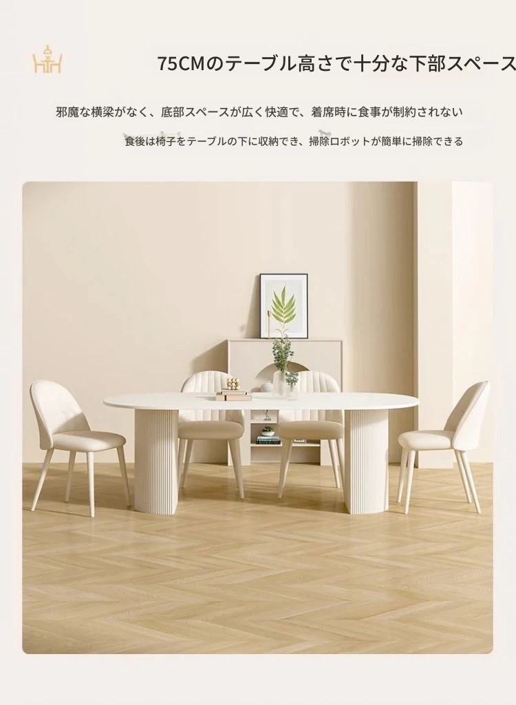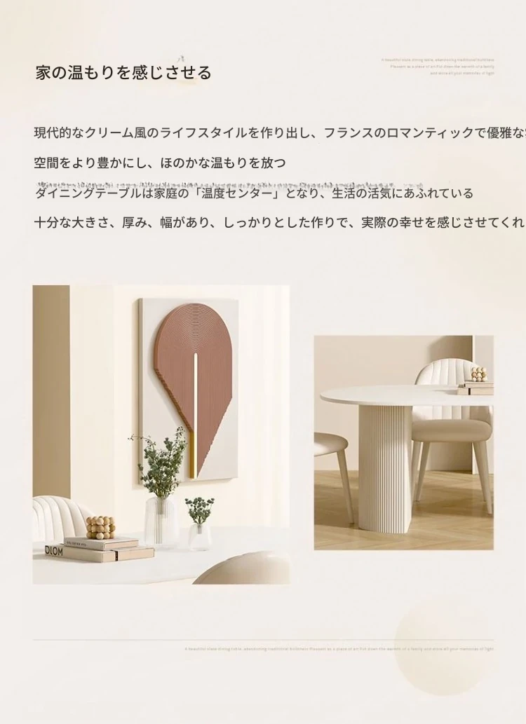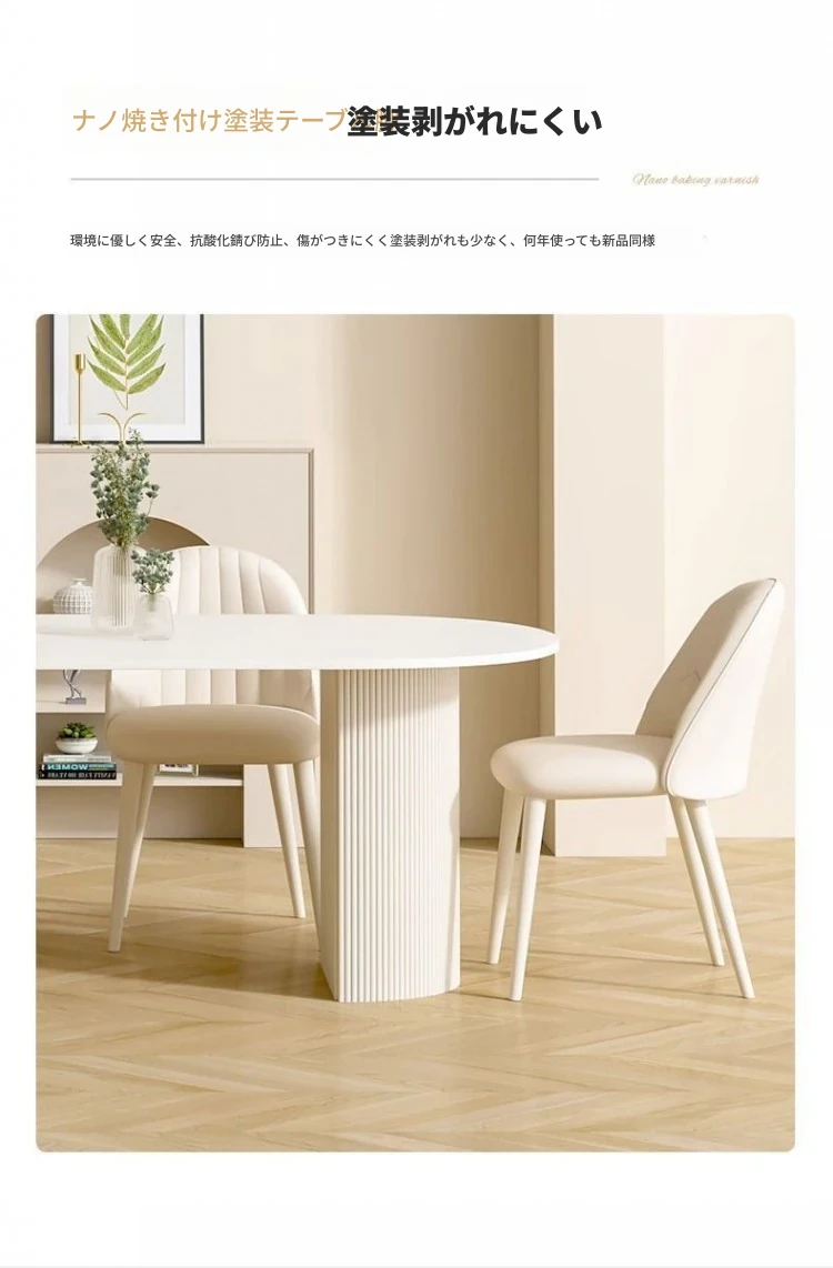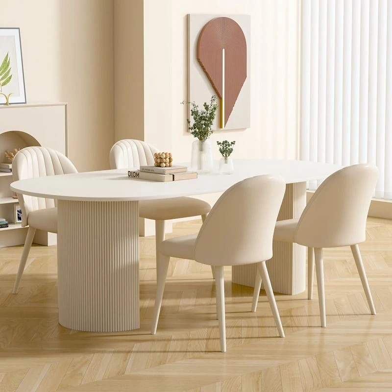 クリーム風味の純白の岩板ダイニングテーブル|小さな家にぴったりな軽奢モダンデザイン|トレンド感あふれるエレガントな楕円形テーブルと椅子のセット!