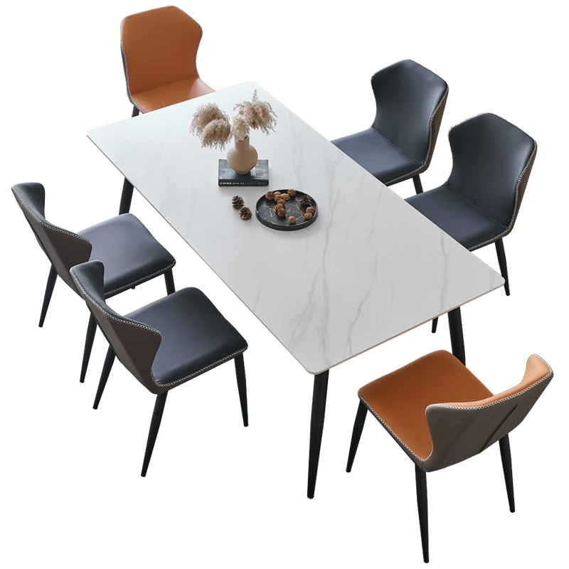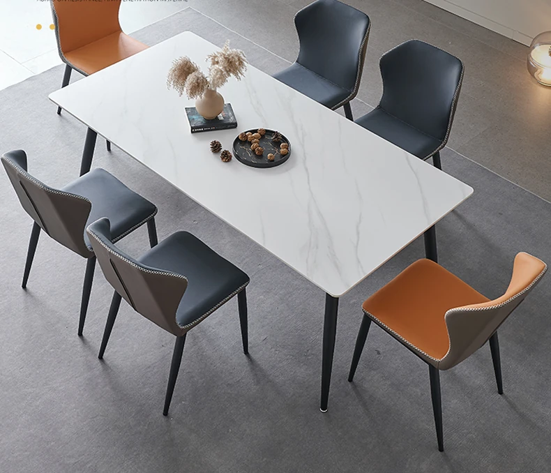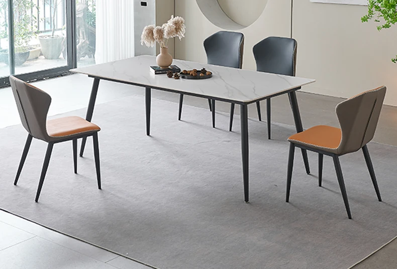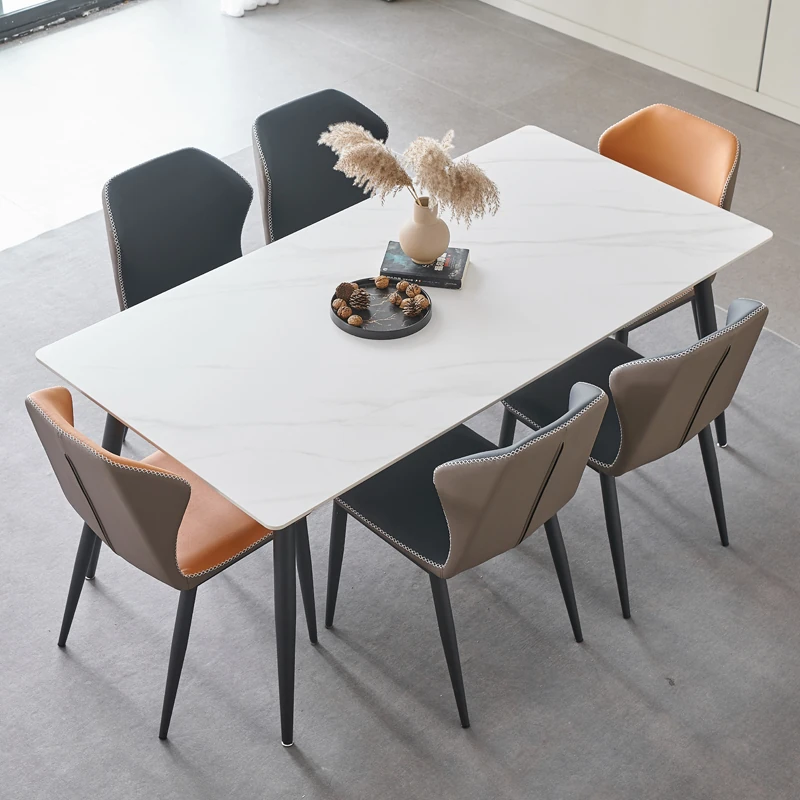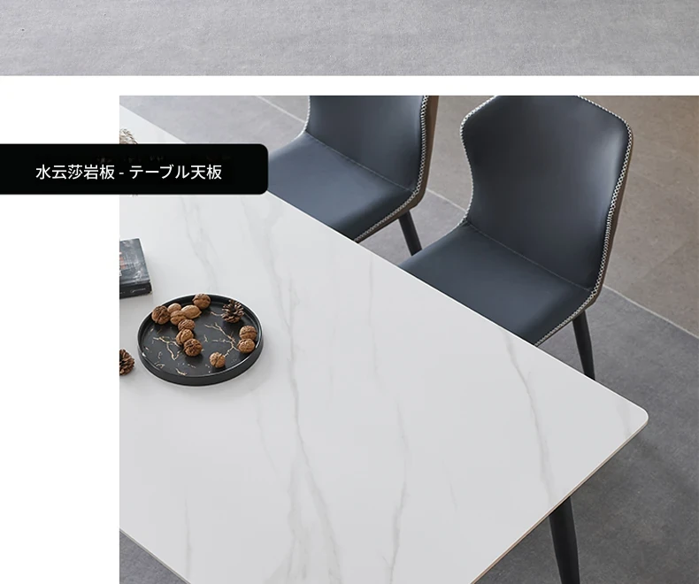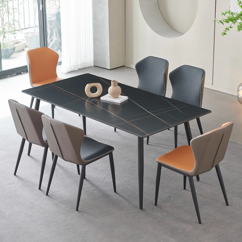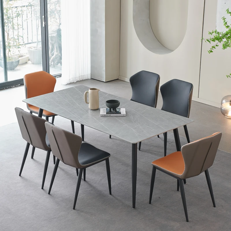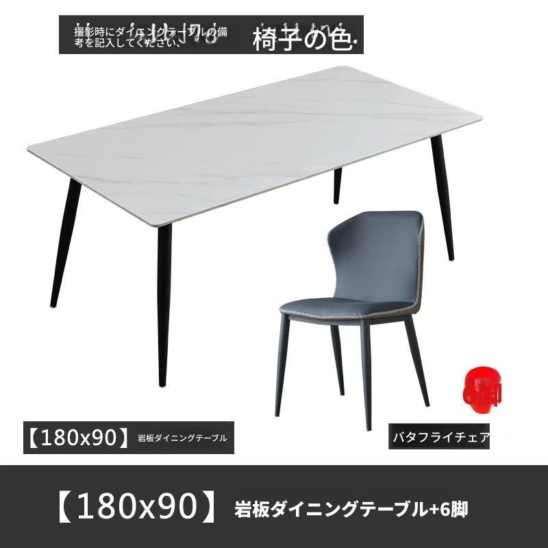 軽奢高級岩板ダイニングテーブルセット - 北欧モダンのシンプルデザイン、小型住宅に最適なイタリアンスタイルの長方形テーブル。洗練された美しさと機能性を兼ね備えた、特別な食事の時間を演出します。