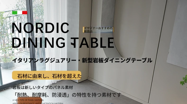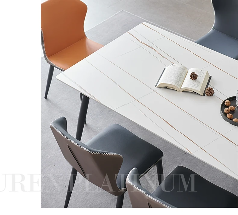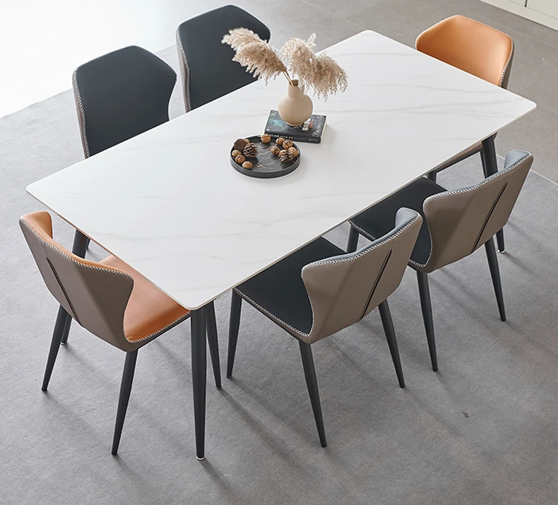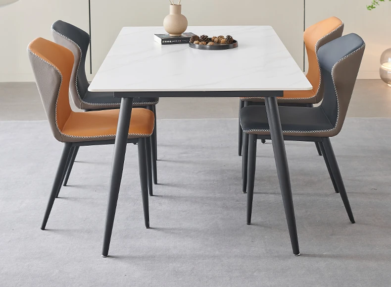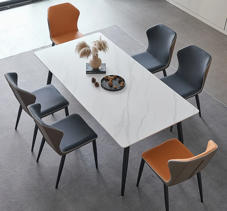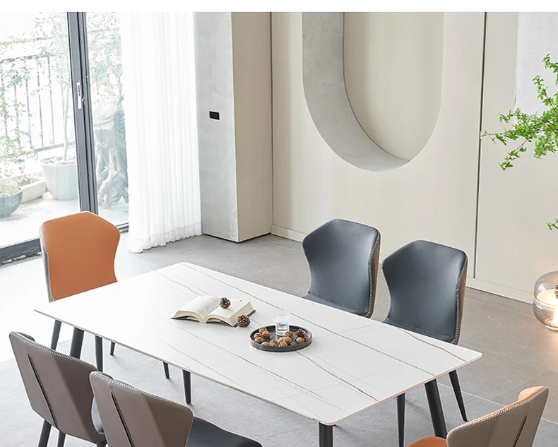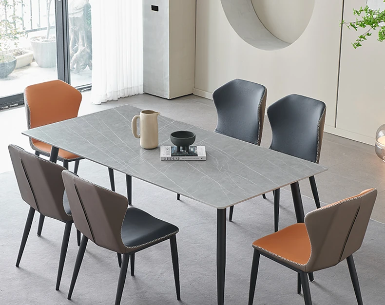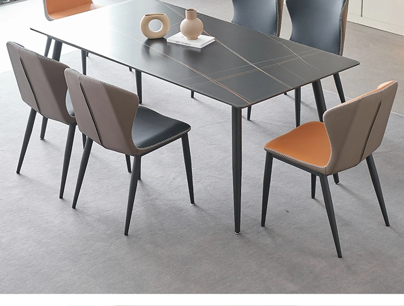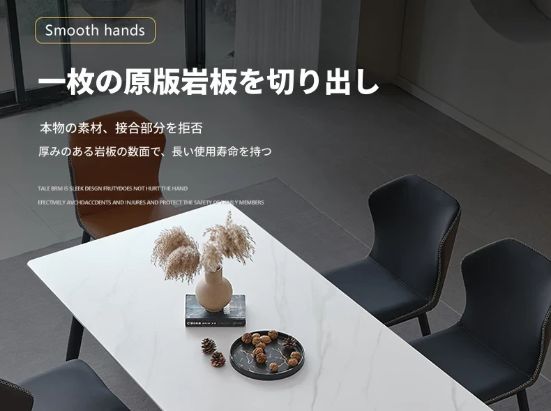 軽奢高級岩板ダイニングテーブルセット - 北欧モダンのシンプルデザイン、小型住宅に最適なイタリアンスタイルの長方形テーブル。洗練された美しさと機能性を兼ね備えた、特別な食事の時間を演出します。