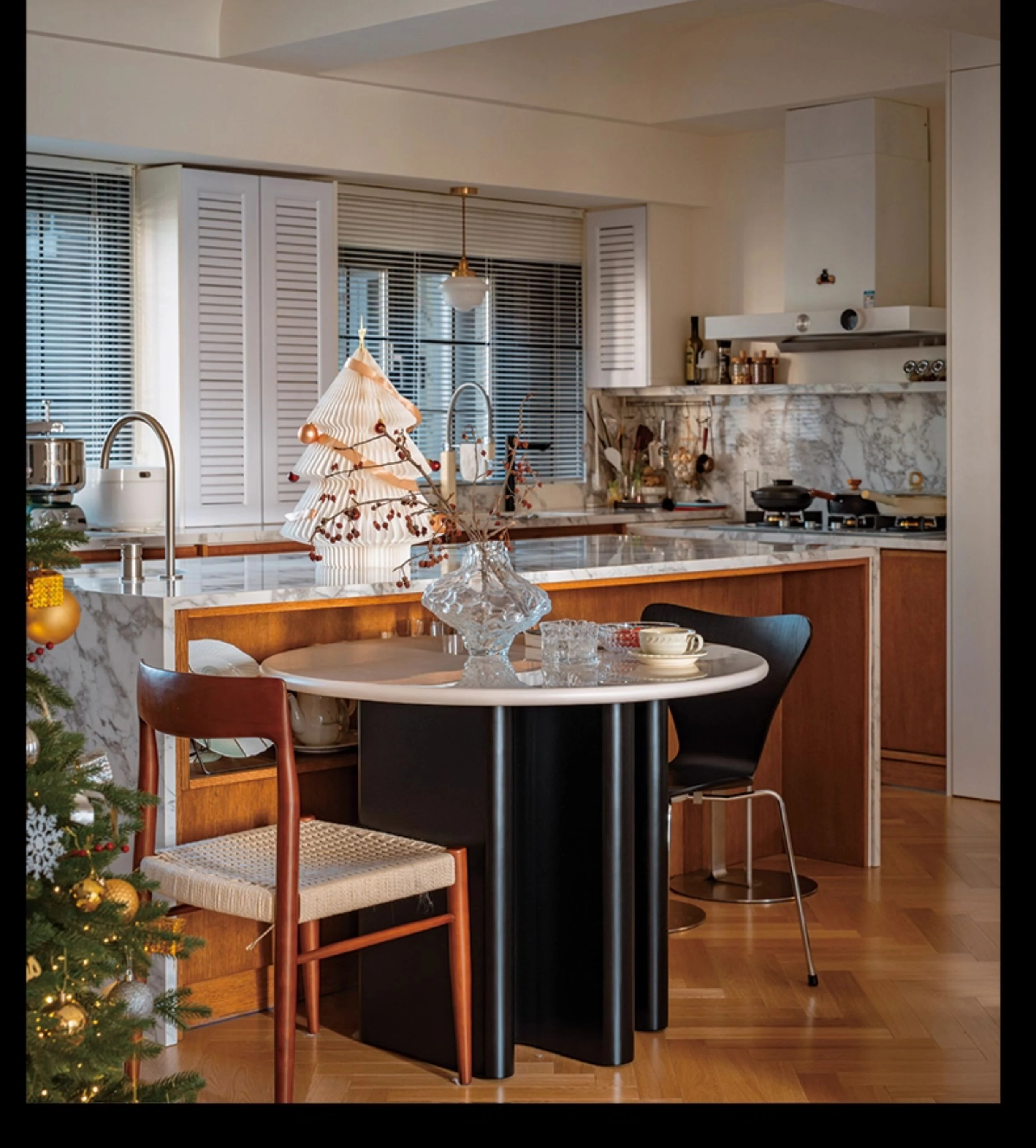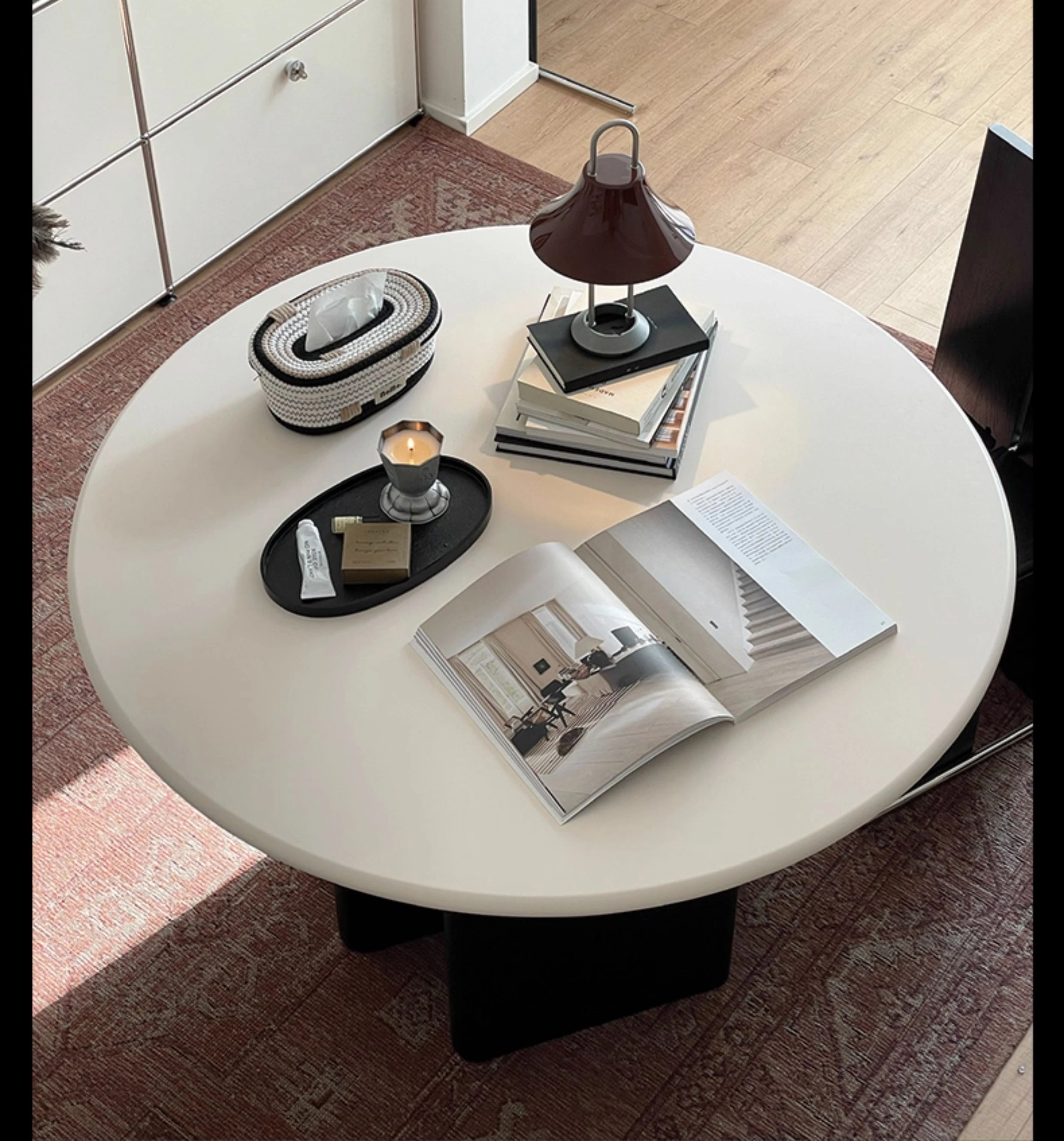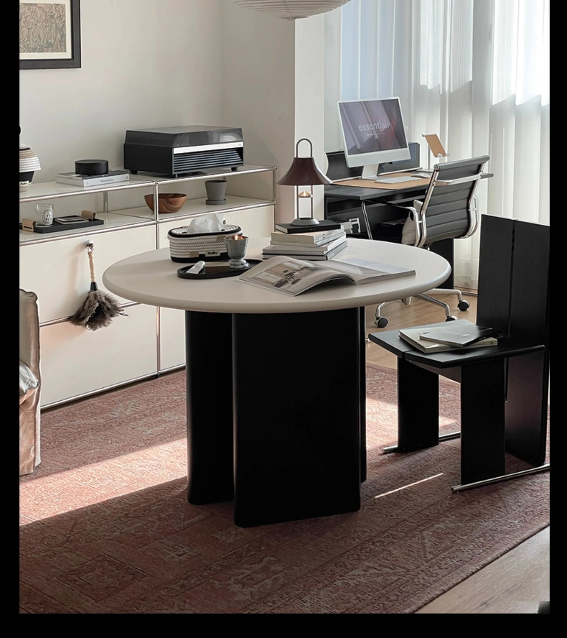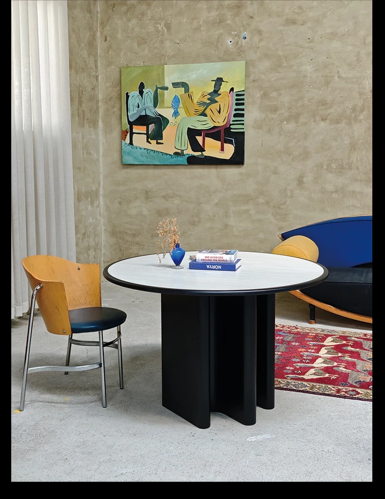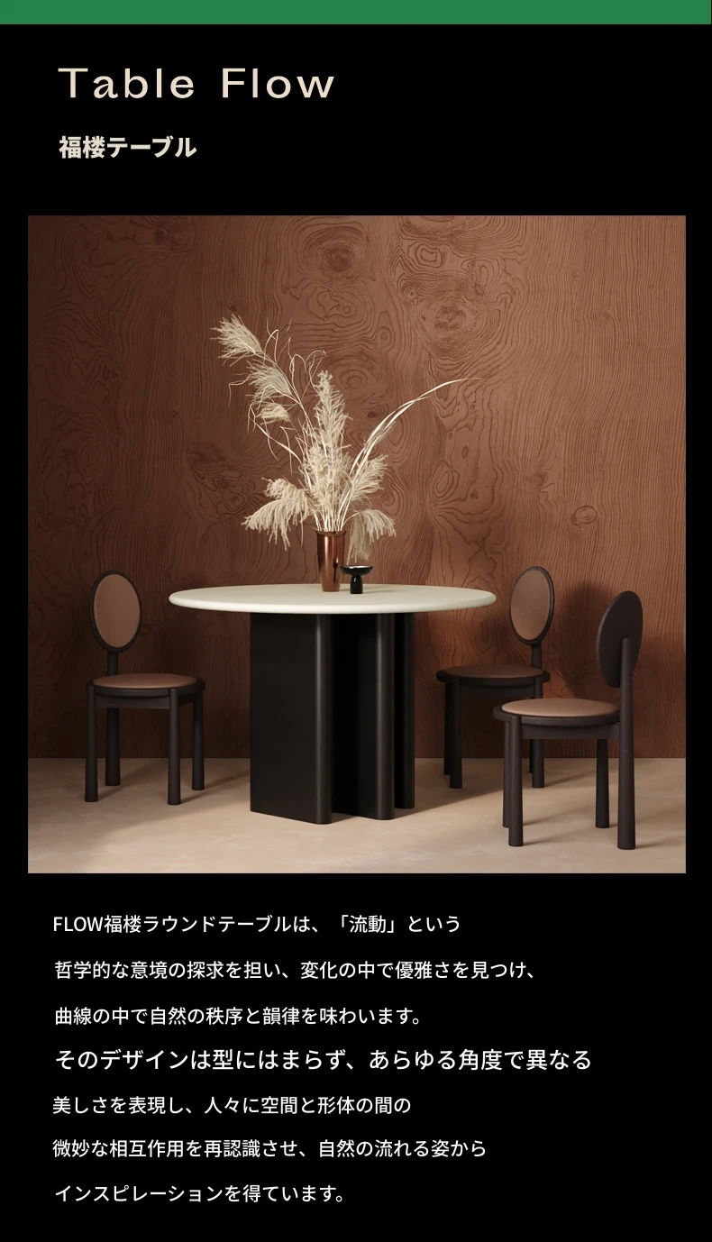Flow 福楼の新作!オリジナルデザイナーによるラウンドテーブル - 洞石岩板を使用したスタイリッシュなダイニングテーブル。あなたの食卓に洗練された雰囲気を!